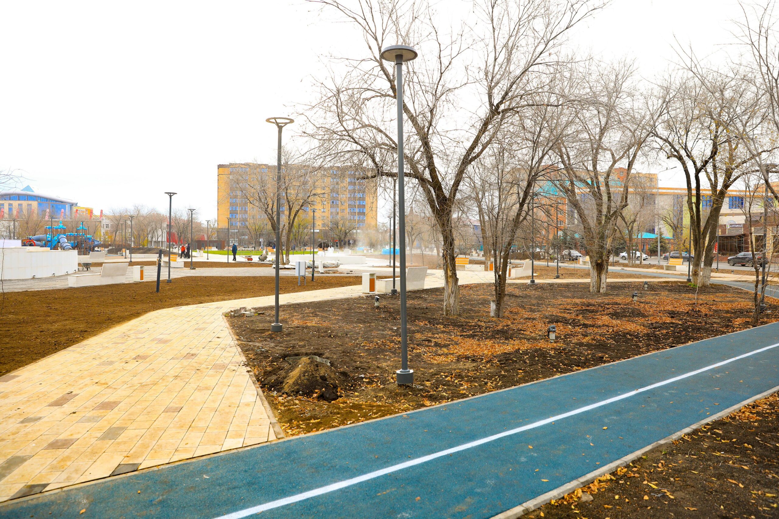 Глава региона посетил сквер у Дворца спорта «Қоныс» на улице Маресьева. Подрядная организация – ТОО «Интерстиль». Работы выполнены на 90%.