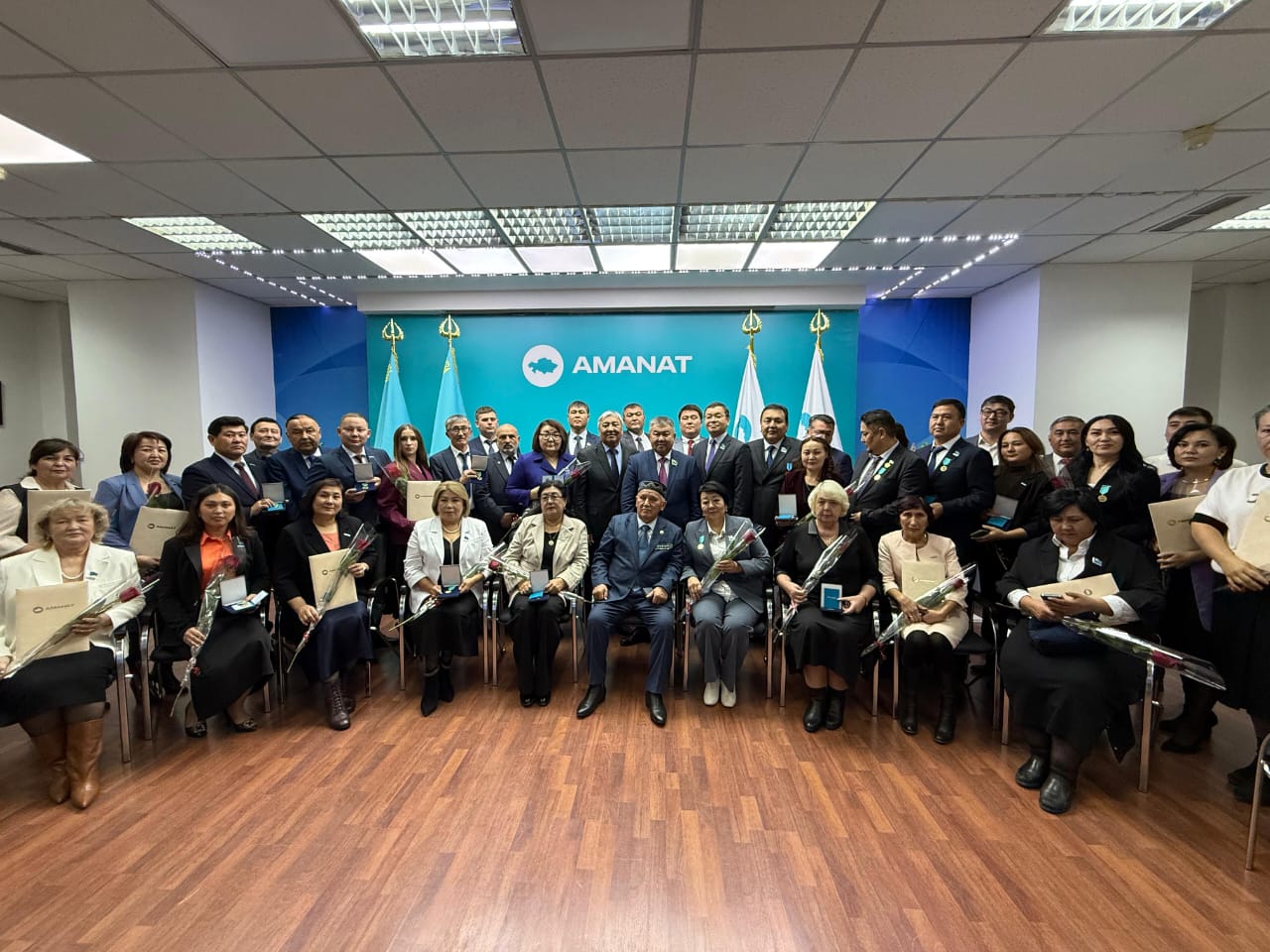 в ходе которого председатель областного филиала Беспалинов Б.М. наградил членов партии, активистов и волонтёров почетными грамотами и медалями Партии AMANAT за вклад в деятельность партии, в их числе была наш депутат Айым Адильбековна.