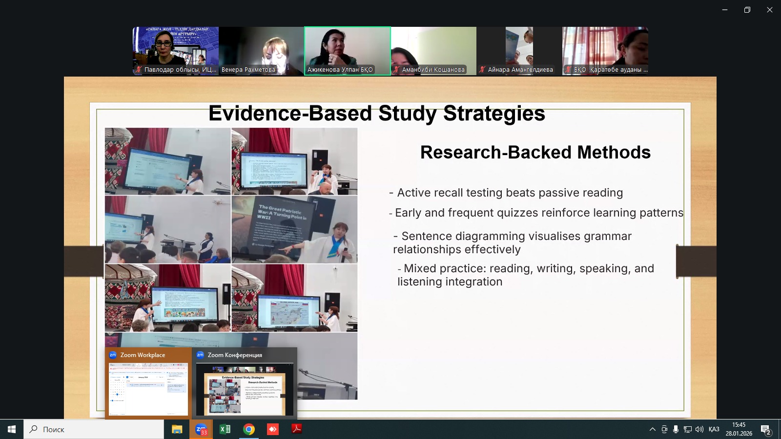 28 января 2026 года Инновационный центр развития образования Управления образования Павлодарской области провел республиканский онлайн семинар-практикум для педагогов английского языка. Мероприятие было организовано в рамках взаимного сотрудничества и подписанного Меморандума о совместной деятельности между управлениями образования Павлодарской, Западно-Казахстанской и Мангистауской областей.