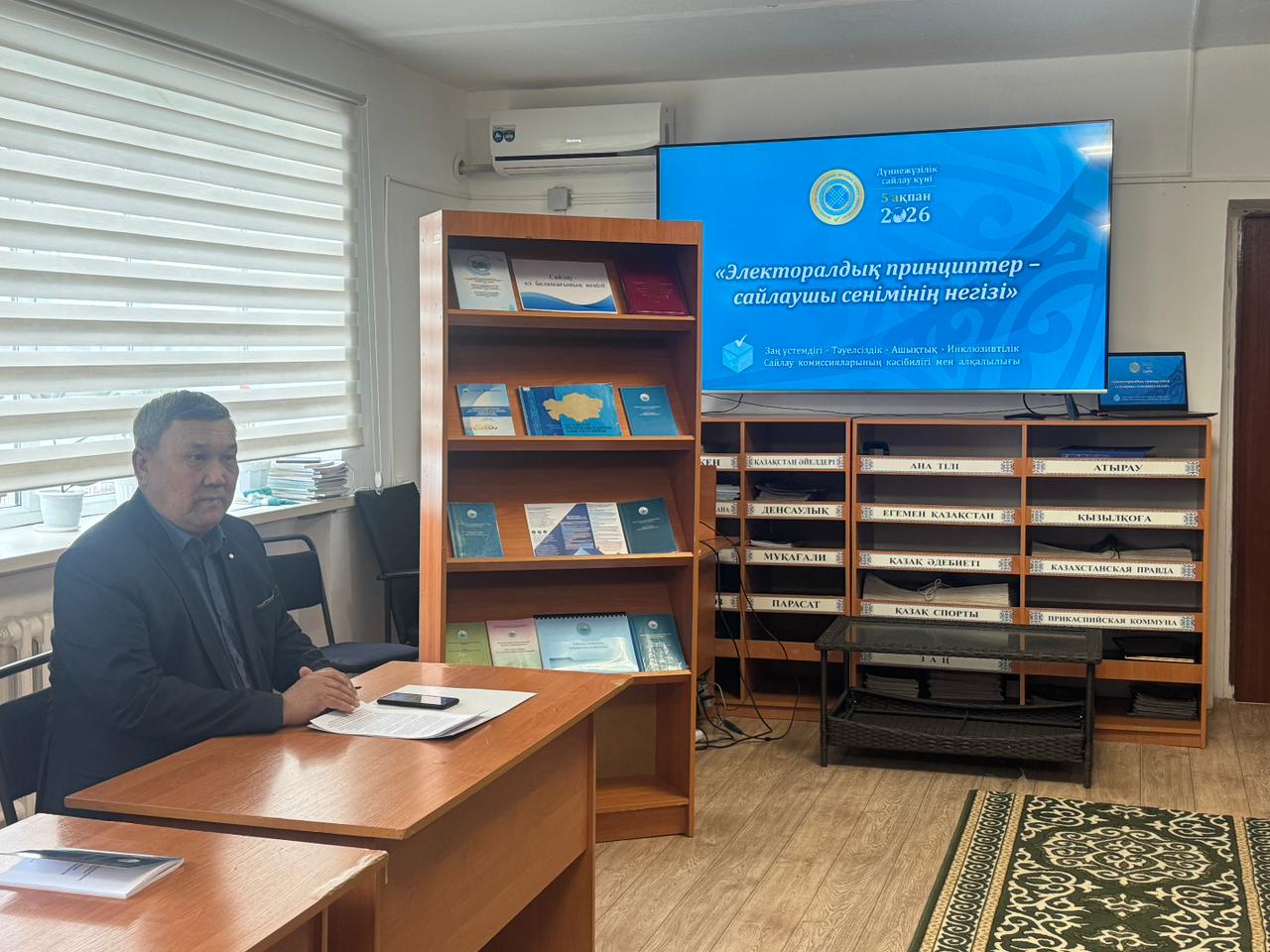 В преддверии “Всемирного дня выборов“, который отмечается 5 февраля 2026 года, в соответствии с планом мероприятий Кызылкогинской районной территориальной избирательной комиссии, посвященного “Всемирному дню выборов“, в Кызылкогинской районной центральной библиотеке организован тематический уголок “право на выборы и избрание Республики Казахстан“, в котором приняли участие председатель районной территориальной избирательной комиссии М. Сайполович и заместитель председателя пропагандировал легитимность.