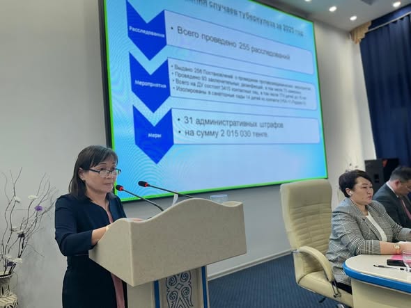 Департамент басшысының орынбасары С.Слямғазина туберкулез жағдайлары бойынша 2025 жылы жүргізілген тергеп-тексеру нәтижелері (жүргізілген іс-шаралар, анықталған бузушылықтар бойынша қолданылған әкімшілік шаралар және т.б.), қарым – қатынаста болғандардың арасында тіркелген аурушаңдық туралы баяндама жасады.