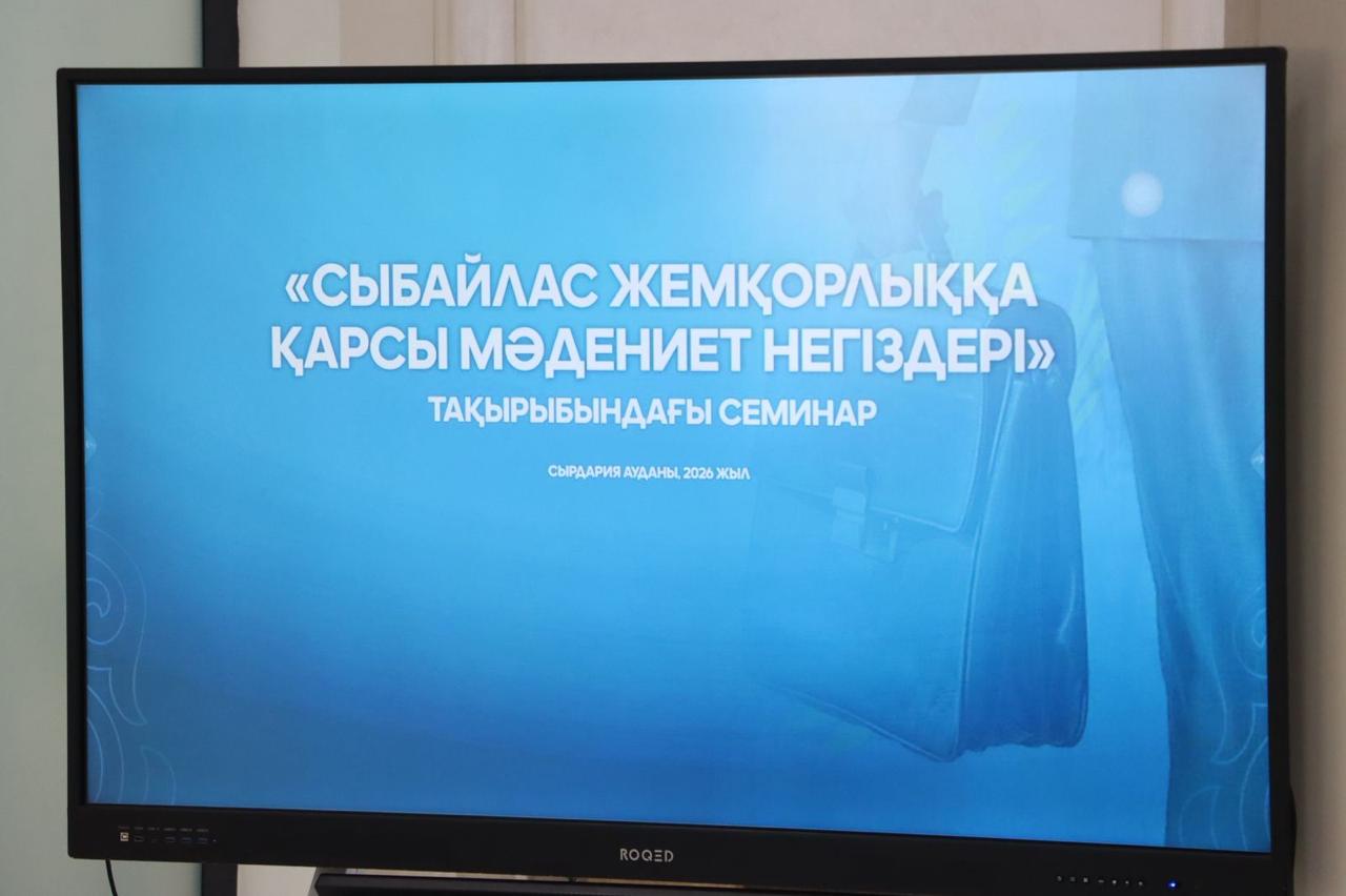 В здании «Руханият орталығы», расположенном в посёлке Теренозек — административном центре Сырдарьинского района, был организован семинар на тему «Антикоррупционная культура».