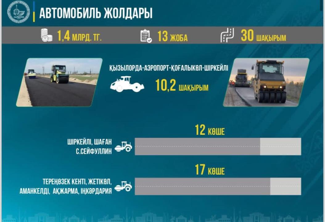 — В прошлом году общий объем строительных работ в районе составил 28,5 млрд тенге. Кроме того, начаты работы по прокладке инженерно-инфраструктурных сетей в новом жилом массиве села Наги Ильясов стоимостью 186,5 млн тенге, реализация данного проекта будет полностью завершена в текущем году. Дорожная отрасль остается одним из приоритетных направлений развития района. В прошлом году на эту сферу было выделено 1,4 млрд тенге, в рамках 13 проектов отремонтировано 30 километров автомобильных дорог. Полностью завершен оставшийся участок протяженностью 10,2 км автодороги районного значения «Кызылорда – Аэропорт – Когалыкол – Ширкейли», а также проведен капитальный ремонт 12 улиц в населенных пунктах Ширкейли, Шаган и имени Сакена Сейфуллина. Кроме того, из районного бюджета было выделено 137 млн тенге на отсыпку щебнем 17 улиц в поселке Теренозек, селах Жетиколь, Амангельды, Акжарма, а также дороги, ведущей к мавзолею «Мулкилан баба» в селе Инкардария. В результате доля дорог районного значения в хорошем и удовлетворительном состоянии достигла 99 процентов, а доля внутрипоселковых дорог — 87 процентов. Также в текущем году подана бюджетная заявка на реализацию 10 проектов общей стоимостью свыше 3 млрд тенге, в том числе выделено 527 млн тенге на капитальный ремонт 13 улиц в поселке Теренозек и селе Шаган. При поддержке акима области в поселке Тереңөзек ведется строительство нового железнодорожного вокзала, соответствующего современным требованиям. Планируется, что данный объект будет введен в эксплуатацию в ближайшие месяцы. В коммунальной сфере также достигнуты конкретные результаты. В настоящее время население района на 100 процентов обеспечено качественной питьевой водой. В прошлом году через производственное подразделение «Сыр суы» на сумму 138 млн тенге проведен капитальный ремонт систем водоснабжения в селах Айдарлы, Жетиколь, Когалыкол, Ширкейли, Акжарма, Инкардария и Калжан ахун. В текущем году планируется реконструкция систем водоснабжения в поселке Тереңөзек и селах Аманкельды, Бесарык, Шаган, имени Аскара Токмагамбетова и Сакена Сейфуллина, — отметил Берик Абдигаппарович.