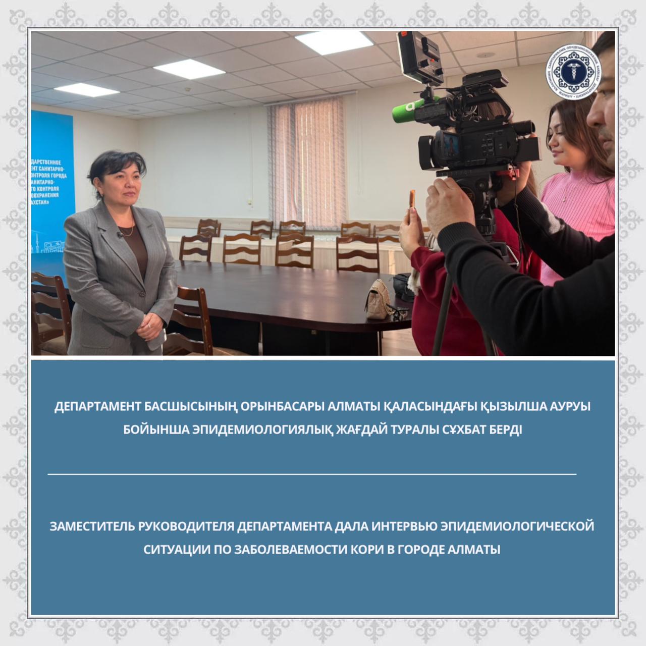27 января заместитель руководителя Департамента санитарно-эпидемиологического контроля города Алматы Калыкова Асель Токановна дала интервью телеканалу «Almaty TV» о текущей эпидемиологической ситуации по заболеваемости кори в городе Алматы.