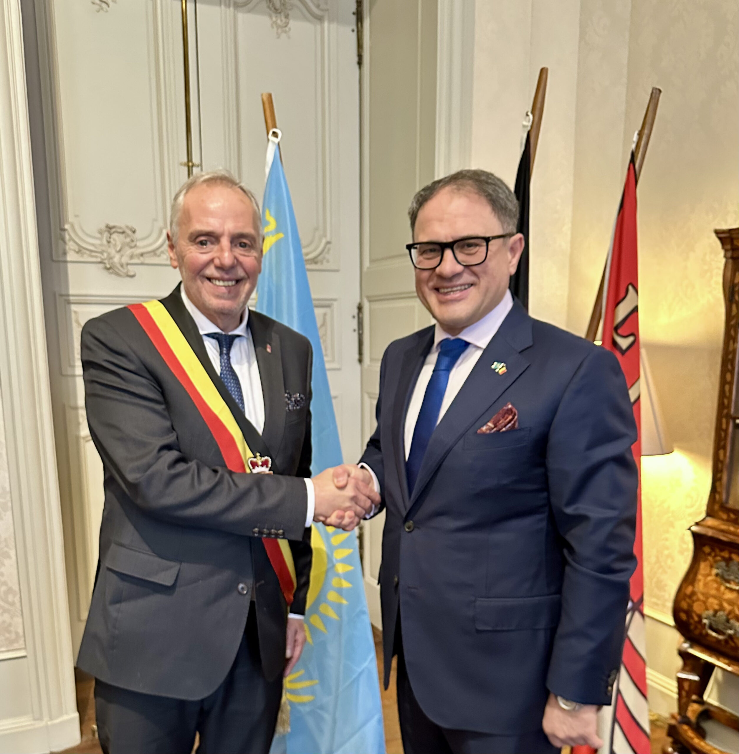 Льеж, 3 февраля 2026 года – В рамках рабочего визита в провинцию Льеж Посол Республики Казахстан в Королевстве Бельгия Роман Василенко провёл встречу с губернатором провинции Эрве Жамаром.