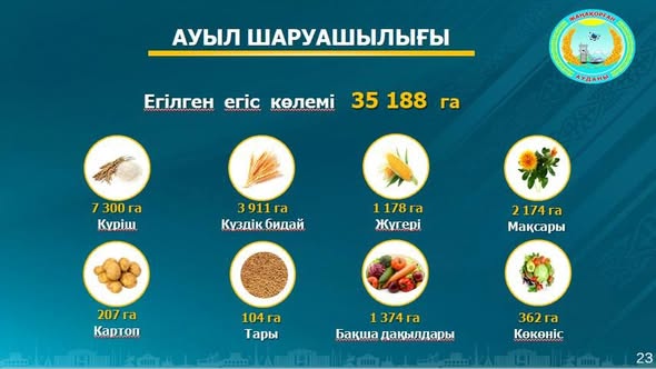 В соответствии с указаниями регионального акима, было расчищено 411 гектаров новых земель, и 845 семей высадили овощи и дыни.