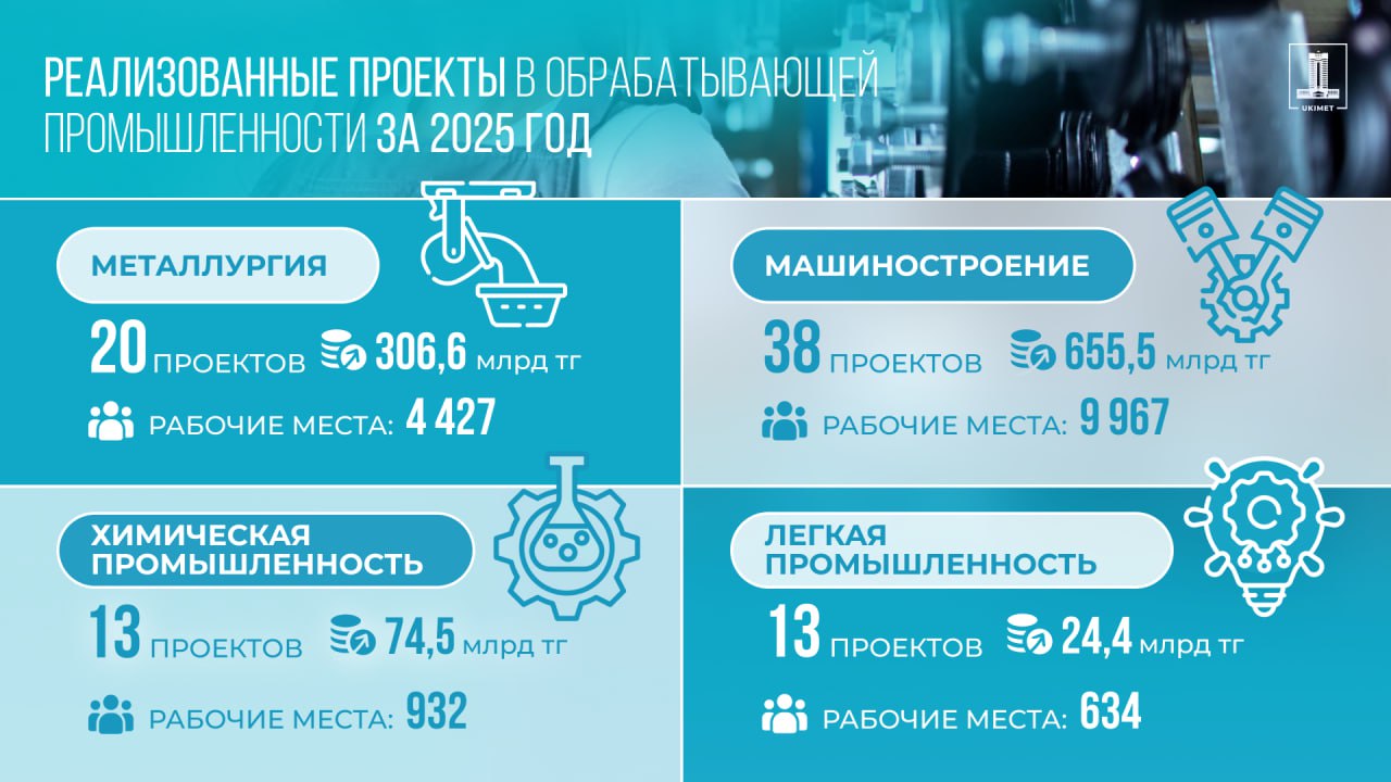 В рамках исполнения поручений Президента Республики Казахстан Касым-Жомарта Токаева по развитию обрабатывающей промышленности, диверсификации экономики и привлечению инвестиций в 2025 году обеспечен устойчивый рост ключевых отраслей.