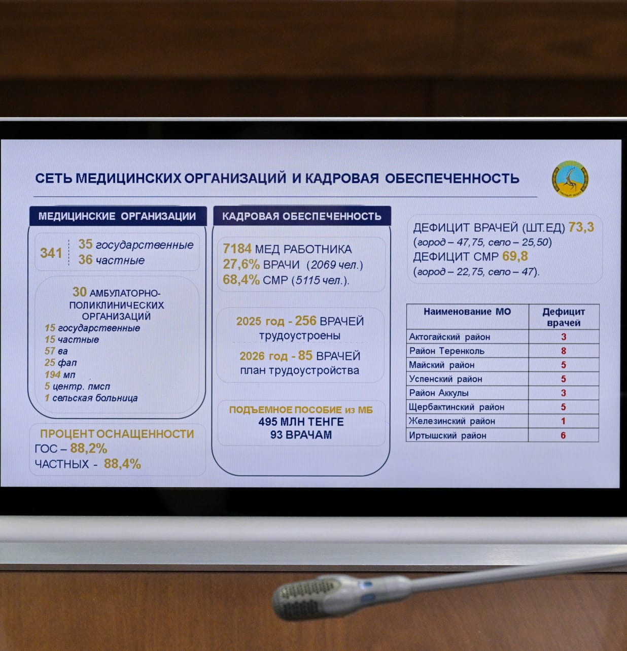 По итогам совещания аким области Асаин Байханов поручил обеспечить достижение ключевых индикаторов в сфере здравоохранения в 2026 году, принять меры по недопущению случаев материнской смертности, снижению младенческой и детской смертности и социально значимых заболеваний, усилить охват населения профилактическими медицинскими осмотрами и скринингами, развивать цифровые технологии и искусственный интеллект, продолжить обновление медицинской техники, усилить контроль за лекарственным обеспечением, вовлечь незастрахованное население в систему ОСМС, а также принять меры по снижению кредиторской задолженности медицинских организаций.