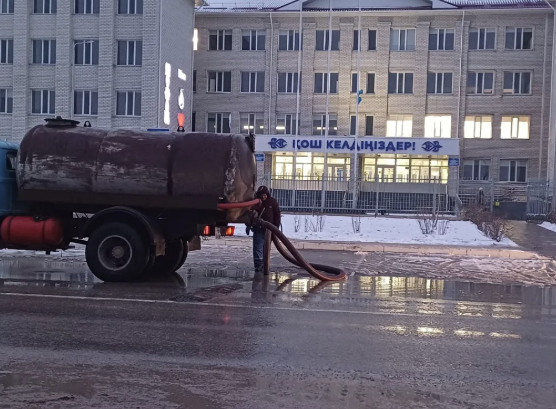 Очистка собранной на территориях социальных объектов воды осуществляется на центральных дорогах Кызылтобинского сельского округа.