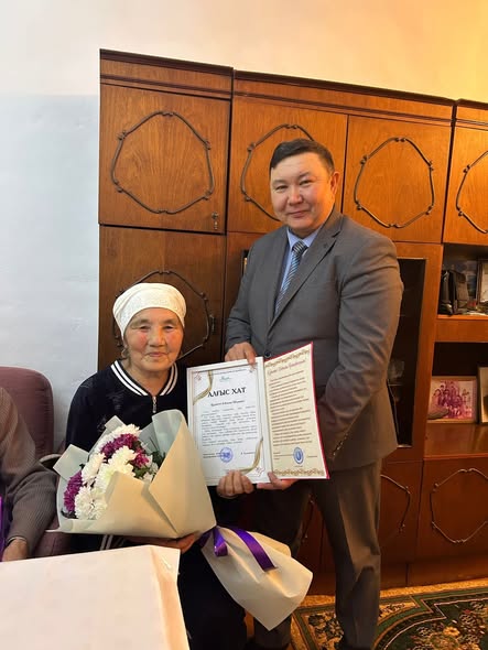 Руководитель районного отдела образования Кыдырмолдин Амангельды Шаймуратович поздравил Илбекову Шеризат Кайырбековну, долгие годы плодотворно работавшую учителем математики в школах района, с 80-летним юбилеем и вручил ей памятный подарок и букет цветов.