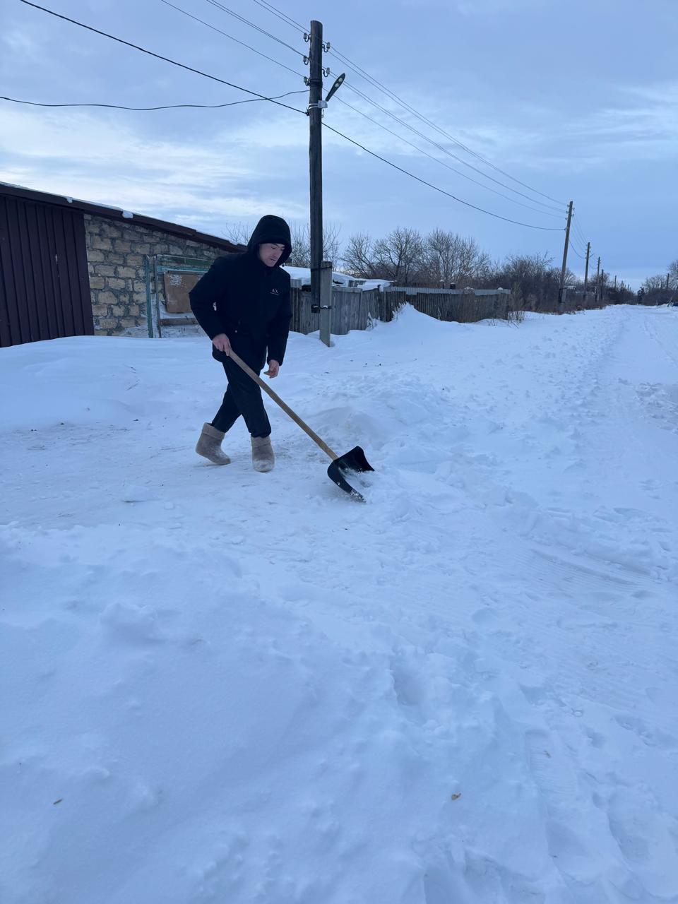 В нашем населённом пункте ведётся уборка снега во дворах и возле домов пенсионеров, одиноких пожилых людей, граждан с инвалидностью и других социально незащищённых категорий жителей.
