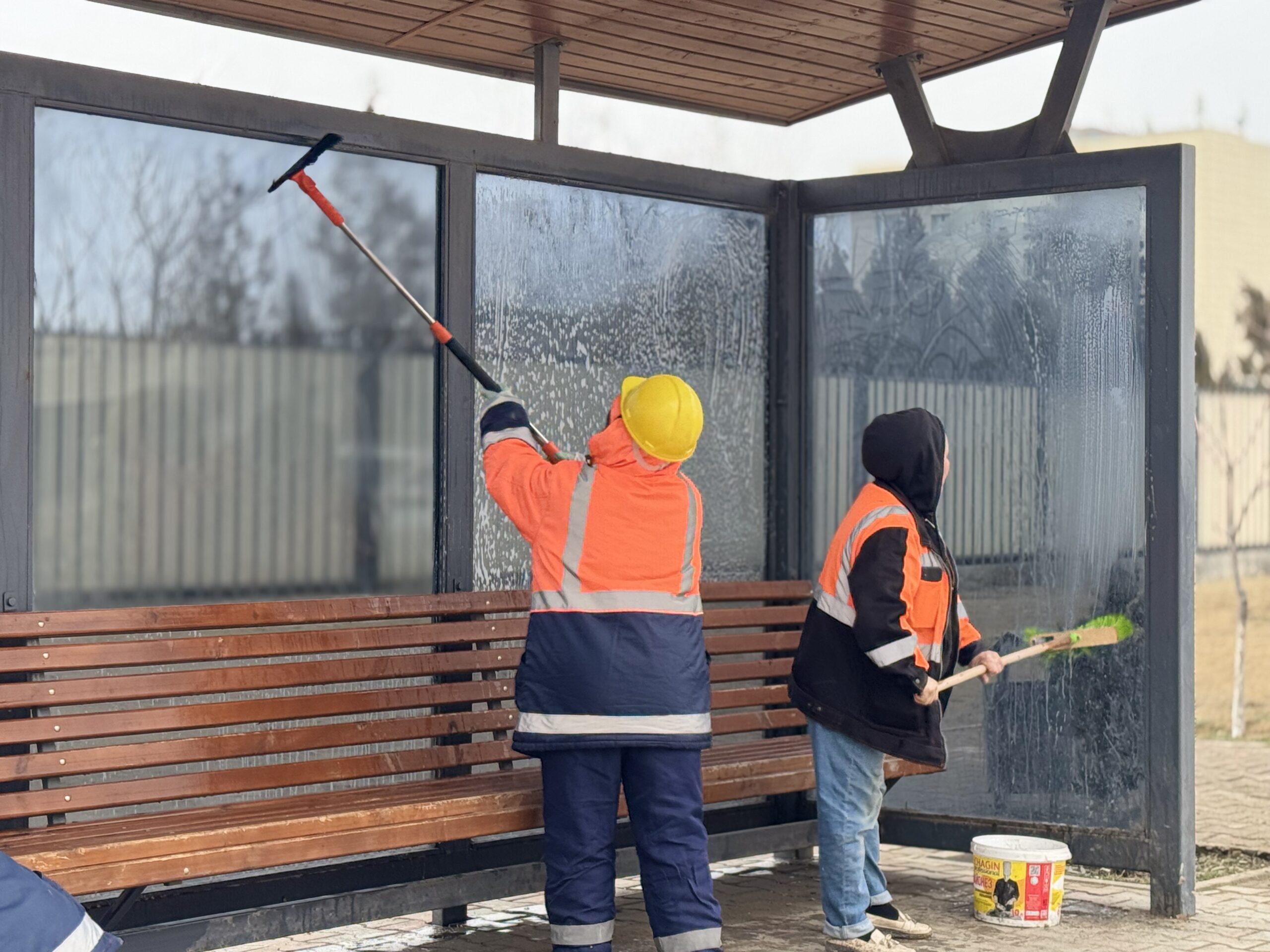 Кроме того, систематически ведутся работы по мойке и санитарной очистке остановок общественного транспорта на территории города. В этих мероприятиях задействовано около 80 работников и 12 единиц специальной техники.