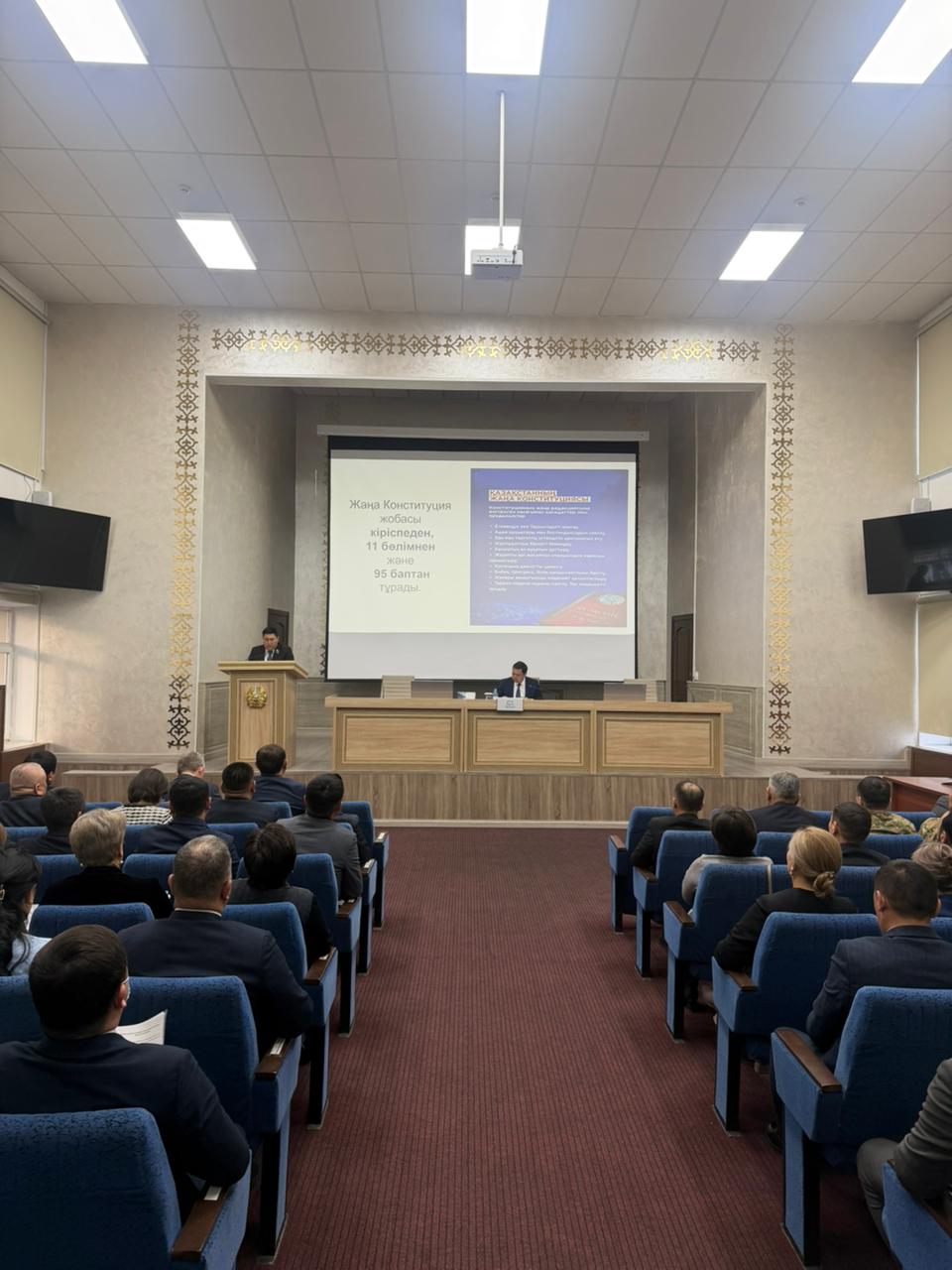 В ходе этого совещания под председательством акима Жамбылского района Нурлана Ертасовича председатель районного маслихата Мадияр Орынтаевич выступил с всесторонним докладом о содержании проекта новой Конституции, изменениях и нововведениях в нем. Он особо отметил важные нормы документа, направленные на развитие страны, совершенствование системы государственного управления и защиту прав и свобод граждан.