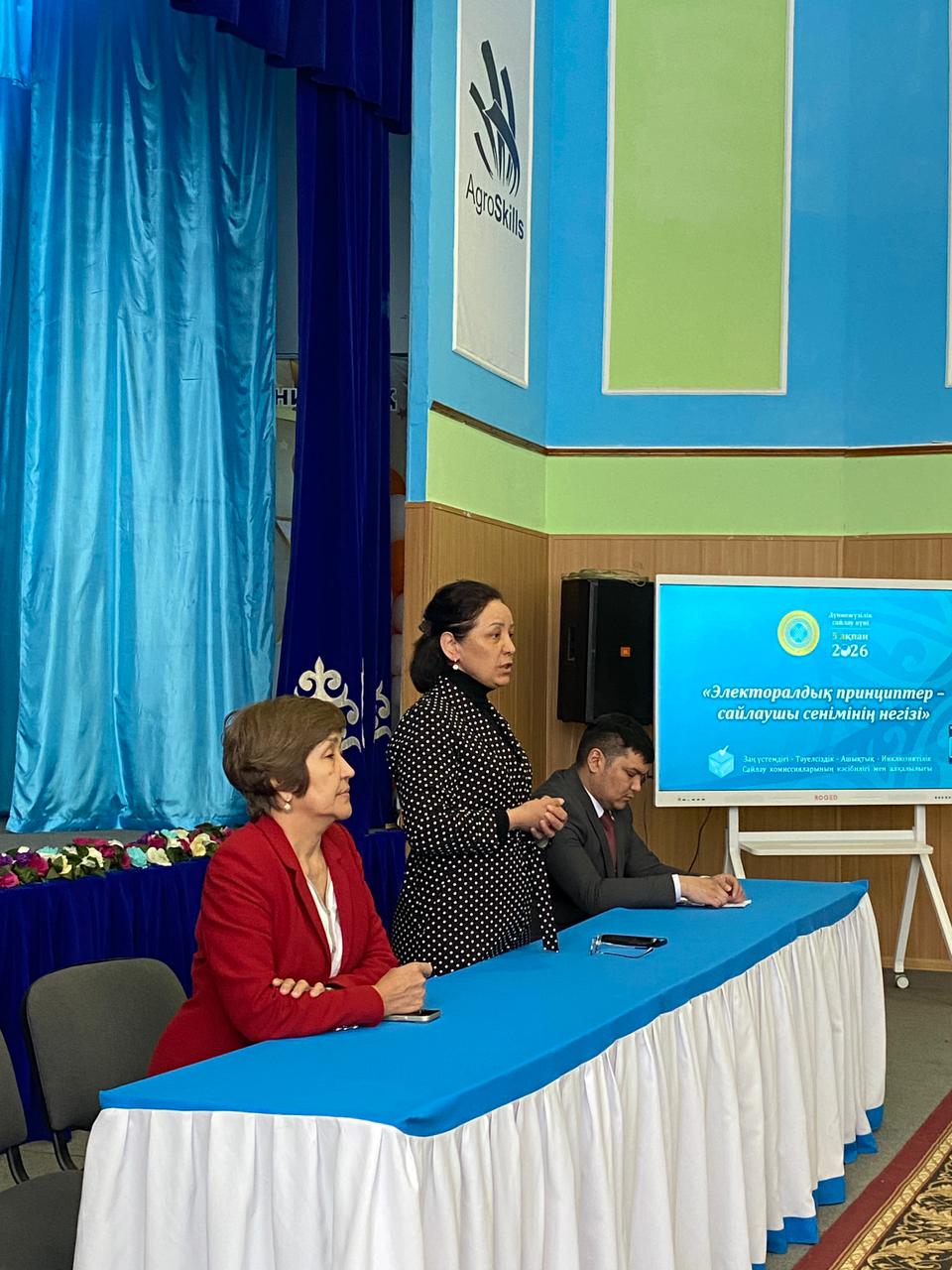 В связи с празднованием Всемирного дня выборов Курмангазинская районная территориальная избирательная комиссия на основании специально разработанного плана 3 февраля 2026 года член территориальной избирательной комиссии Анесова Армангуль Шынтаевна совместно с председателем Клуба молодых избирателей Батуовым Нуртилеком Нурбековичем провели встречу со студентами аграрно-технического колледжа Курмангазинского района на тему «Ты знаешь свое избирательное право?”. Во время встречи студентам были даны разъяснения закона Республики Казахстан « О выборах в Республике Казахстан ” и ознакомлены с правилами выборов. На вопросы студентов были даны исчерпывающие разъяснения. В ходе встречи обучающиеся колледжа пришли к выводу, что участие в выборах-долг каждого гражданина страны.