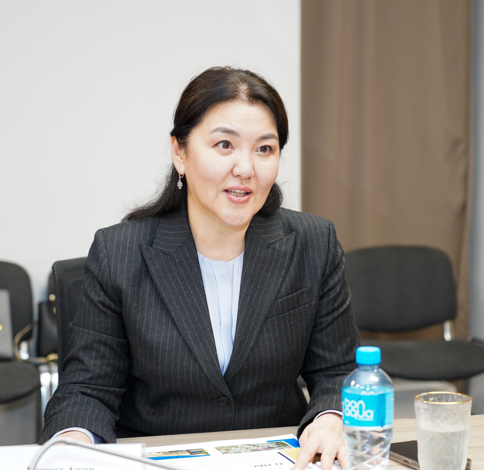 А. Гиният поделилась опытом применения современных методов реабилитации, оказываемых в Национальном детском реабилитационном центре, и озвучила предложение по открытию нового центра в Туркестанской области.