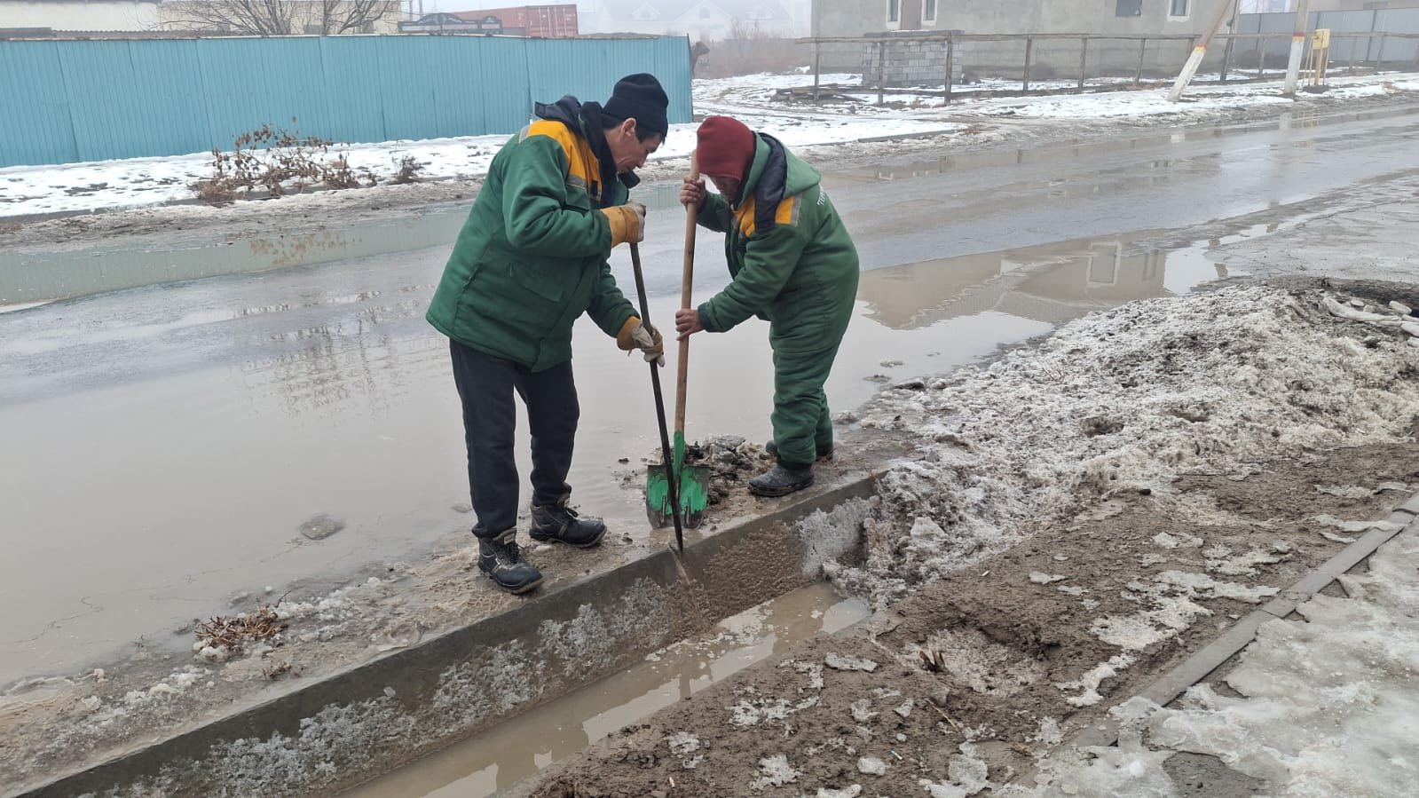 В целях предотвращения скопления воды на проезжей части из-за таяния снега проводятся работы по очистке обочин от снега.