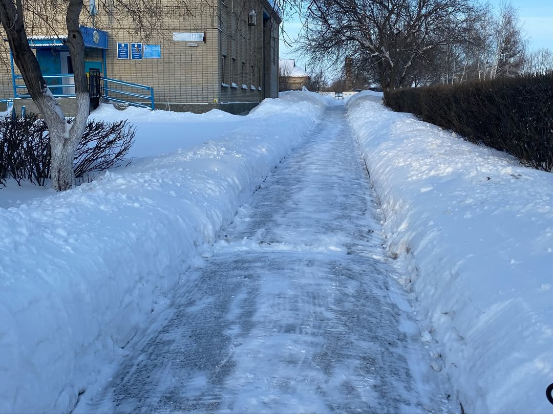 В ходе акции был очищен снег перед въездной частью в здание акимата.