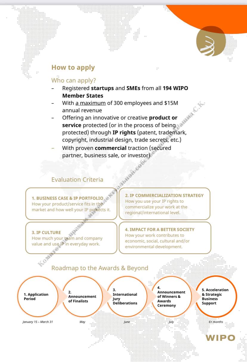 Участие и победа в данной Премии способствуют повышению узнаваемости казахстанских стартапов и субъектов малого и среднего предпринимательства на международном уровне в рамках ВОИС и системы Организации Объединенных Наций,