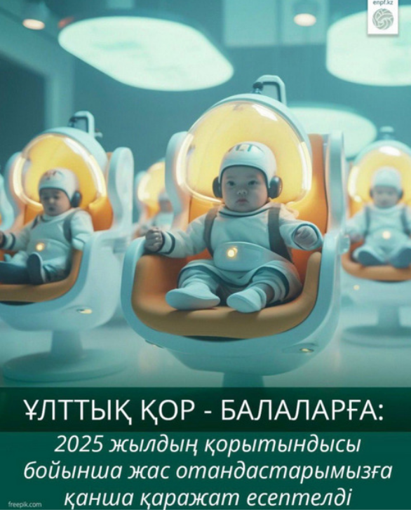 По итогам 2025 года в рамках программы «Национальный фонд – детям» в очередной раз начислены целевые требования детям-гражданам Республики Казахстан в возрасте до 18 лет. Лицам, которым в 2026 году исполняется 18 лет, зачислены целевые накопления на целевые накопительные счета.