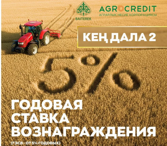 Для подачи заявок на участие в программе «Кең дала 2» аграрии могут обратиться в региональные филиалы АО «Аграрная кредитная корпорация».