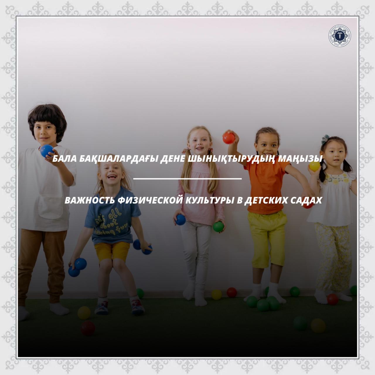 В соответствии с санитарными правилами «Санитарно-эпидемиологические требования к дошкольным организациям и домам ребенка», утвержденными приказом Министра здравоохранения Республики Казахстан от 9 июля 2021 года № ҚР ДСМ-59, в детских садах должны быть предусмотрены отдельные игровые и спортивные площадки для физической активности. Площадь игровых площадок рассчитывается в зависимости от количества детей и должна составлять не менее около 4 квадратных метров на одного ребенка. Оборудование на площадках должно соответствовать возрасту и росту детей, быть безопасным и не иметь острых травмоопасных элементов. Занятия физической культурой должны проводиться в специально оборудованных игровых помещениях или спортивных залах.