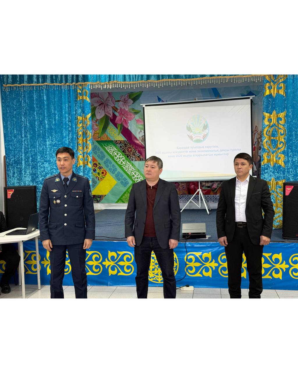 В мероприятии принял участие начальник районного отдела полиции Мурат Омаргалиев, который провёл разъяснительную работу по профилактике интернет-мошенничества. Также на встрече присутствовал новый руководитель районной больницы Жамбыл Жайлыбаев, ответивший на вопросы жителей в сфере здравоохранения.