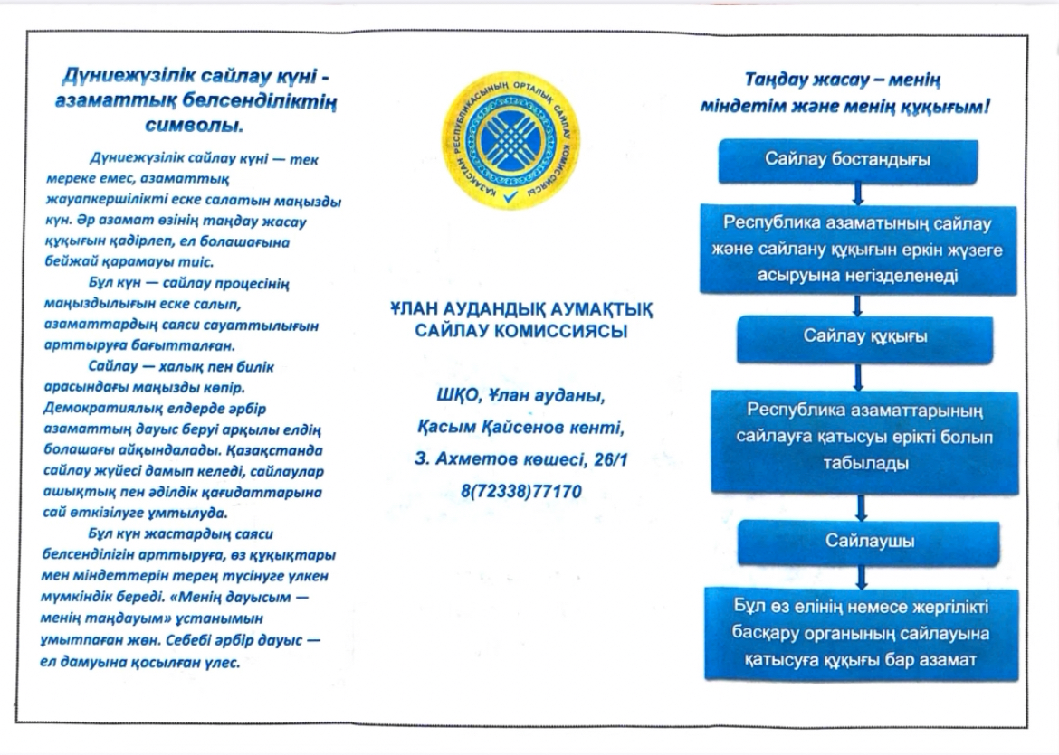 В честь Всемирного дня выборов Уланская районная территориальная избирательная комиссия организовала информационно-разъяснительную акцию среди населения района, в ходе которой была проведена раздача тематических флаеров.