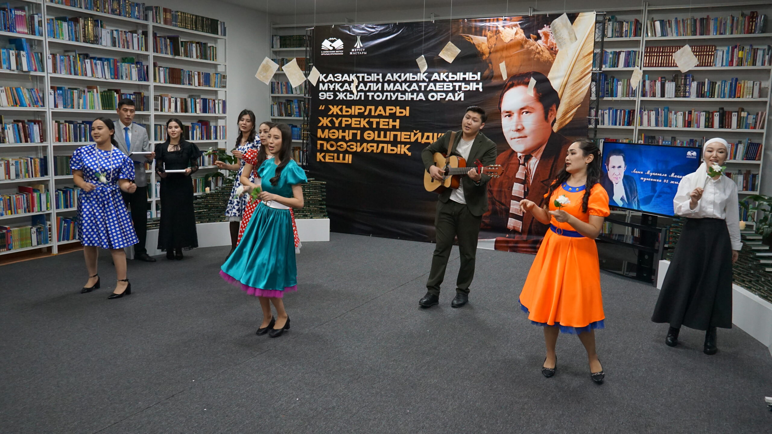В рамках проекта «Кешкі́ кітапхана́», состояялся познаваательный поэти́ческий вечер под назва́нием «Жырлары жүректе мә́ңгі өшпе́с Мұқағали», посвящённый 95-ле́тию со дня рожде́ния леге́ндарной фигу́ры каза́хской поэ́зии — лири́ческого поэ́та Мукагали́ Маката́ева.