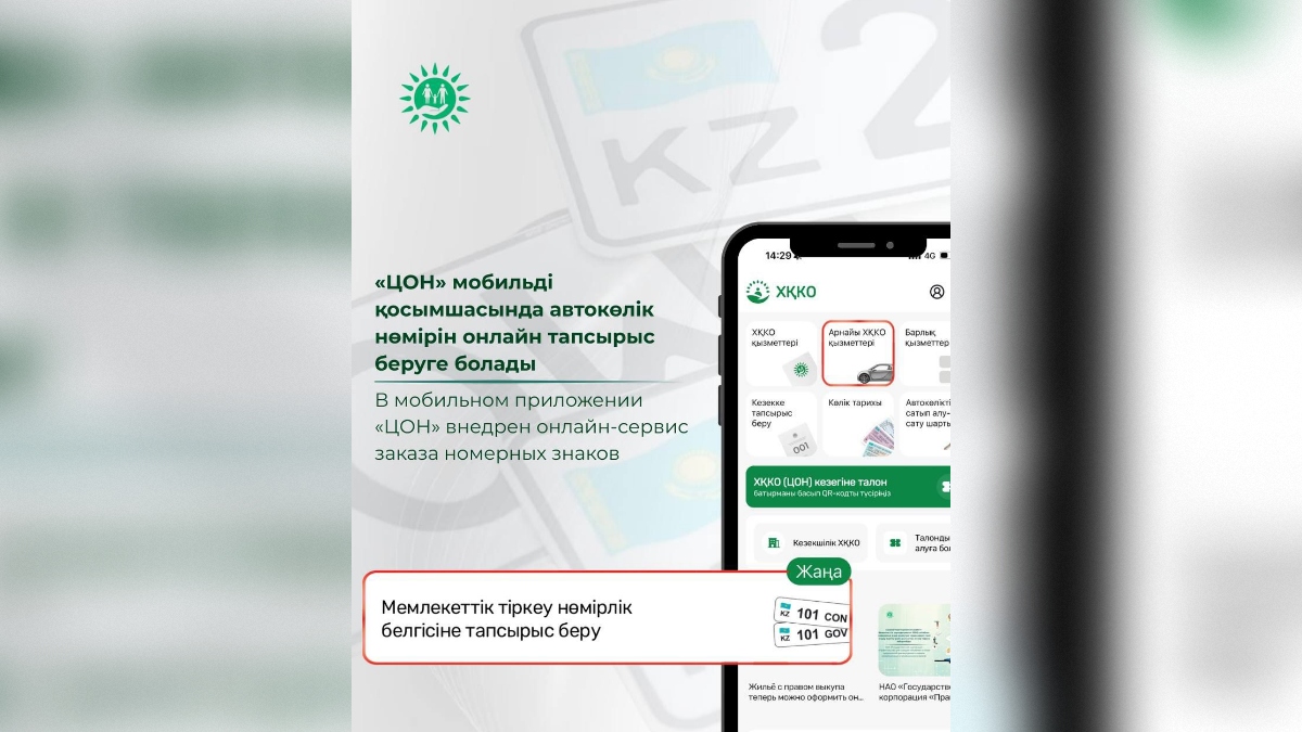 Государственная корпорация «Правительство для граждан» сообщает о запуске в мобильном приложении ЦОН нового цифрового сервиса онлайн-заказа государственных регистрационных номерных знаков.