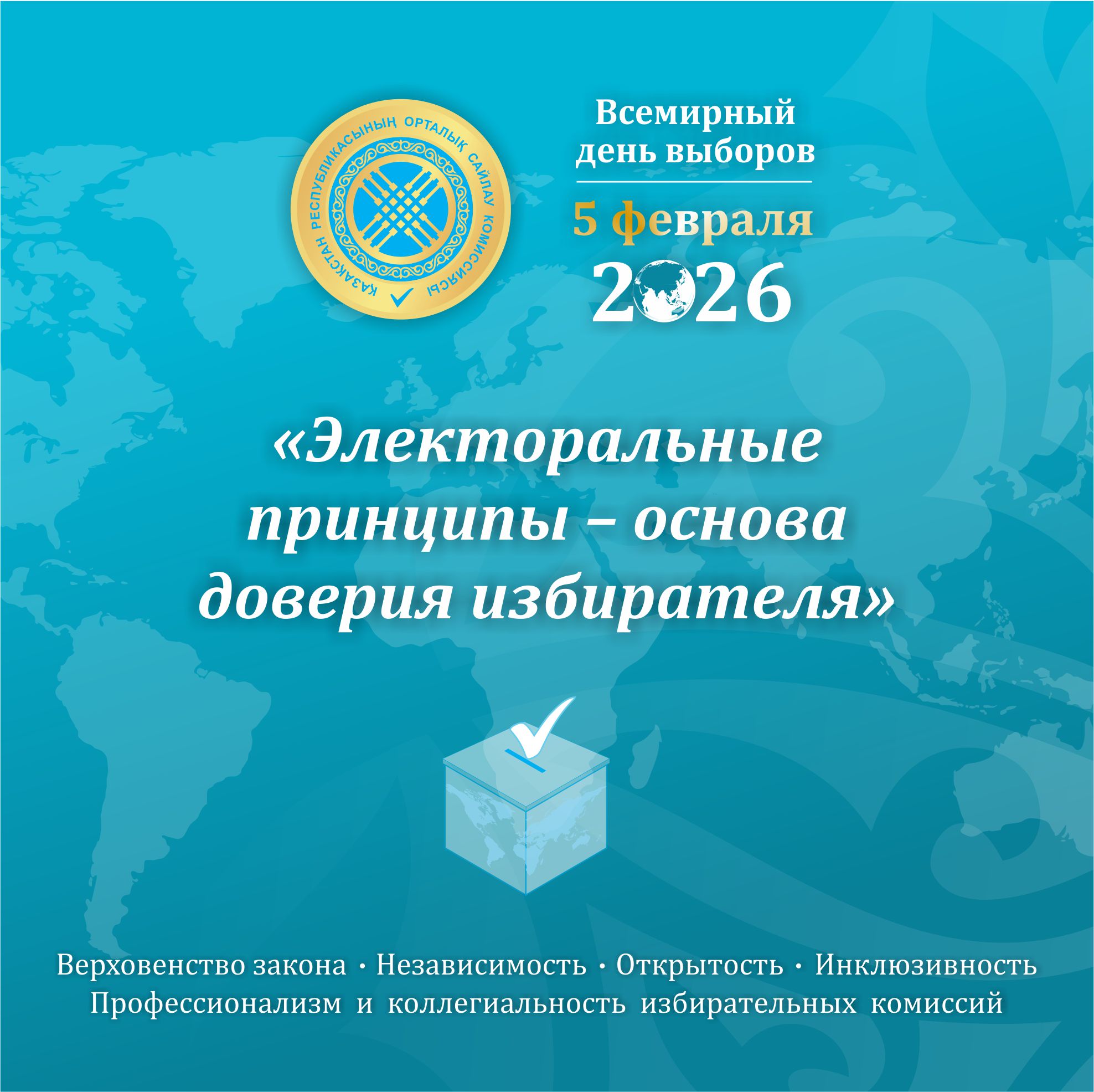 Всемирный день выборов, инициированный Европейской ассоциацией организаторов выборов (ACEEEO), отмечается ежегодно в первый четверг февраля. Основная цель Дня-пропаганда права граждан на участие в выборах, повышение значимости уважения демократических гражданских прав и свобод, а также привлечение внимания общественности к обеспечению прозрачности и справедливости избирательных процессов.