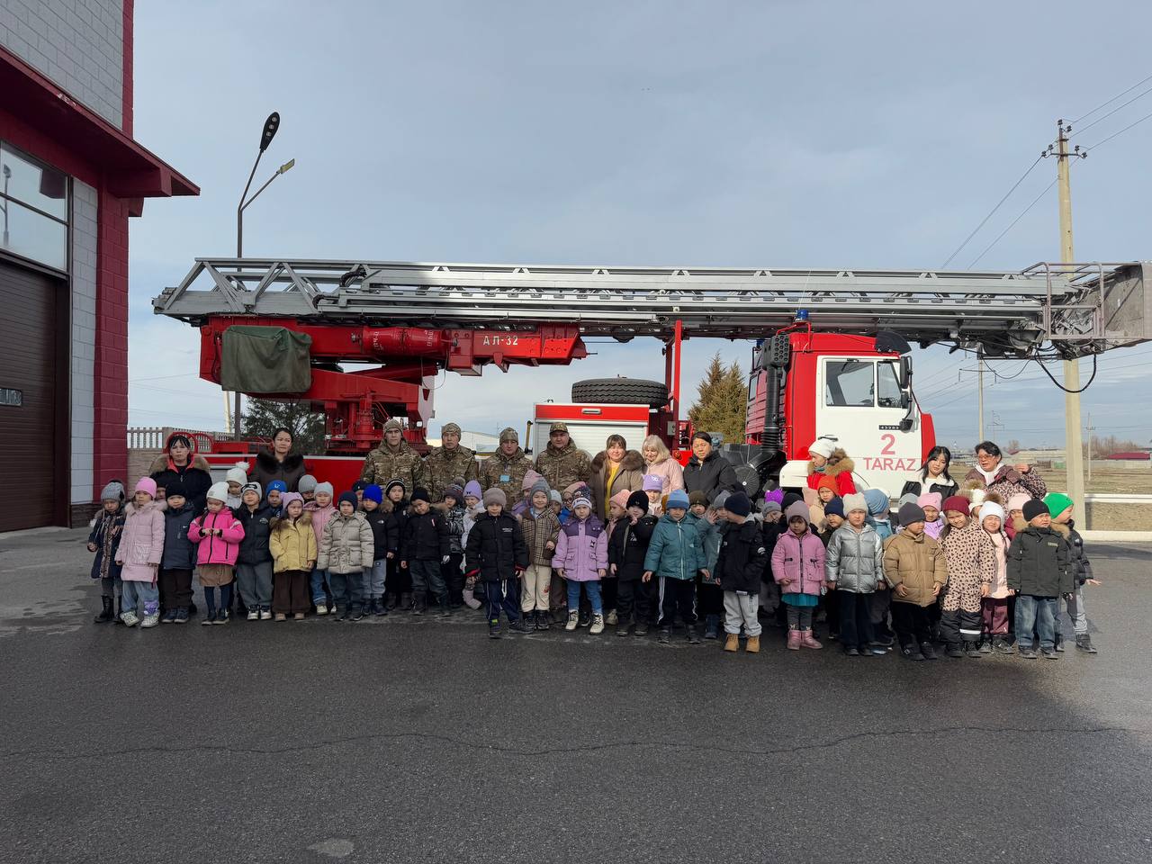 В специализированной пожарной части №2 города Тараз имени Халық Қаһарманы М.Айманова прошёл день открытых дверей для воспитанников детского сада-ясли №17. Ребята познакомились с пожарной техникой, побывали в пожарной части и музее, а также узнали, как работают настоящие пожарные. Спасатели в доступной и интересной форме напомнили детям о правилах пожарной безопасности и важности их соблюдения. В завершение встречи маленьких гостей ждали сладкие угощения и яркие эмоции, которые сделали этот день по-настоящему запоминающимся. Такие мероприятия помогают с раннего возраста формировать культуру безопасности и доверие к спасателям.