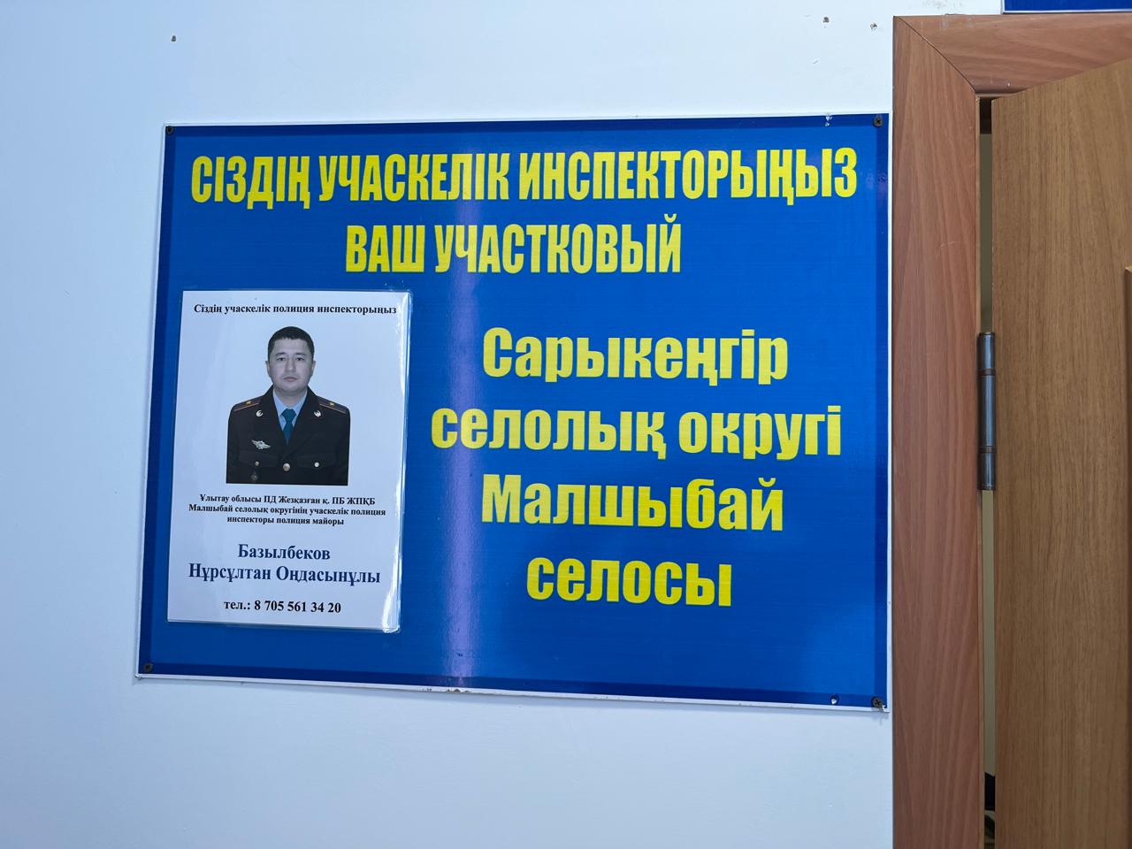 🔹 В целях обеспечения соблюдения правовых стандартов и оценки деятельности участкового пункта полиции региональный представитель А.Б. Каримов , провёл мониторинг УПП №11 сельского округа Малшыбай УП г. Жезказган ДП области Ұлытау
