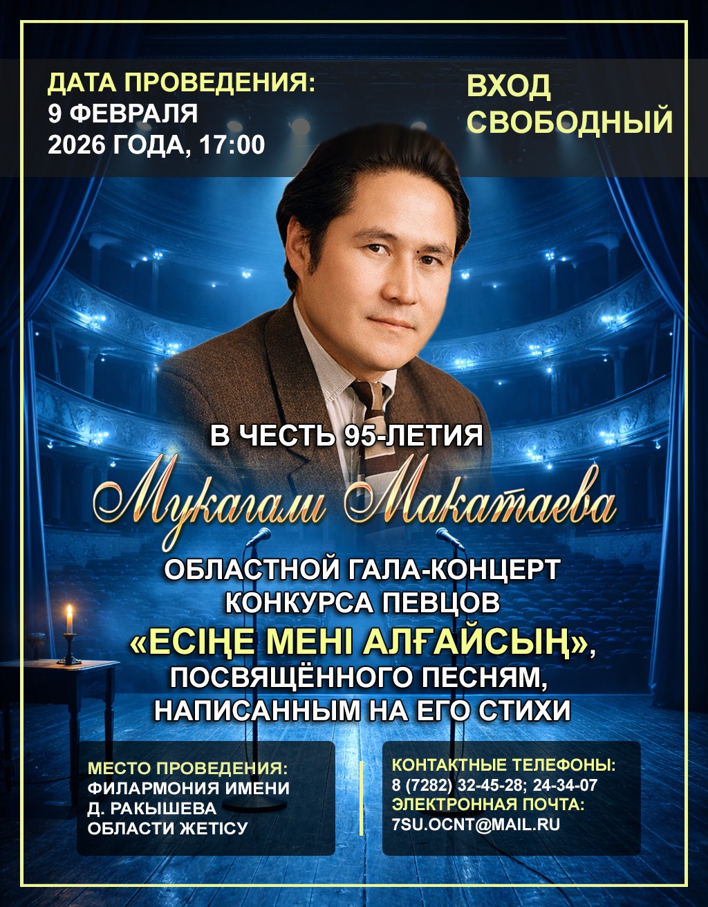 В честь 95-летия Мукагали Макатаева областной гала-концерт конкурса певцов «Есіңе мені алғайсың», посвящённого песням, написанным на его стихи