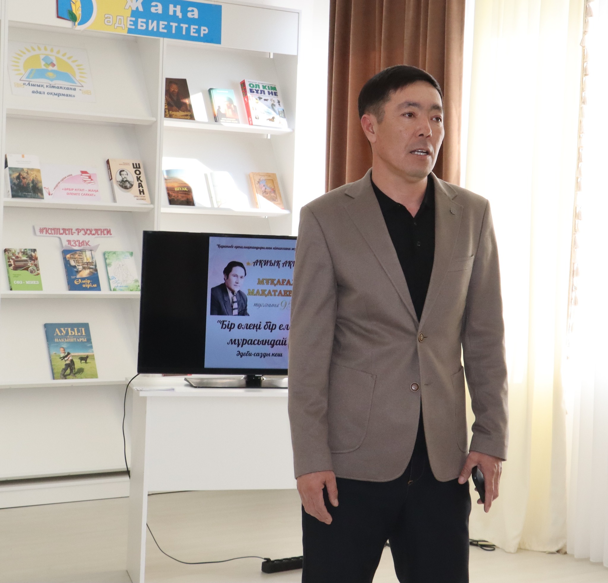 Литературно-музыкальный вечер, целью которого было осмысление жизни и творчества великого поэта Мукагали Макатаева, оставившего неизгладимый след в сердцах людей, демонстрация важности широкого распространения поэзии поэта среди народа и ее жизненной силы, а также представление публике стихов, написанных на стихи поэта, посетили председатель районного маслихата Нурлан Мендешов, начальник районного отдела культуры, развития языка, физического воспитания и спорта Маулен Салахаден, артисты, популяризирующие песни Мугали, читатели библиотеки и старосты села.