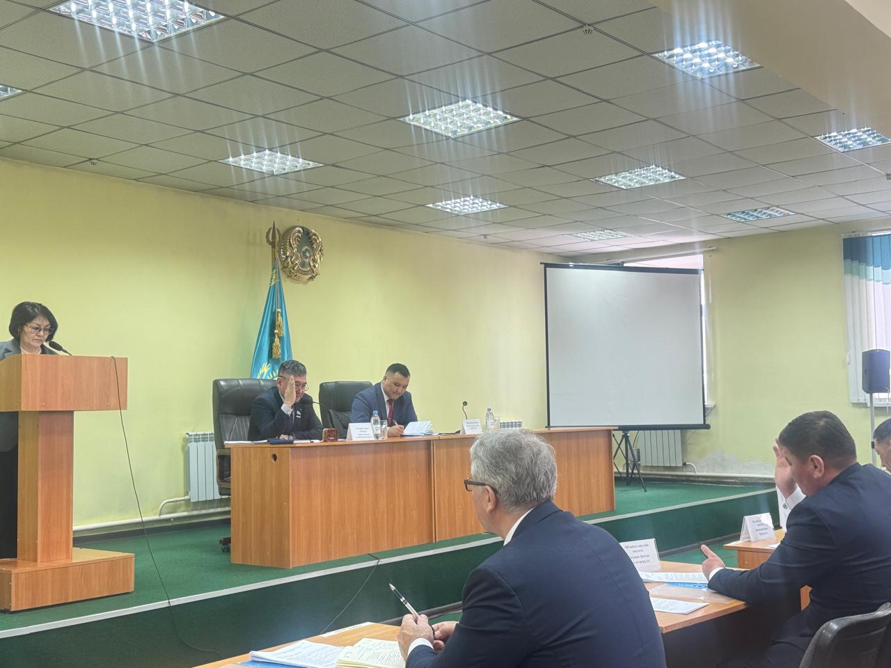На внеочередную сорок девятая сессии районного маслихата из 6 депутатов приняли участие 4 депутатов.На внеочередную сессию были приглашены заместитель акима района Роллан Нұрланұлы, руководитель районного отдела экономики и финансов Жанаева Гульзира Кумаргазиновна, заместитель председателя районной территориальной избирательной комиссии Тлеубаева Роза Кусаиновна, а также акимы сельских округов.
