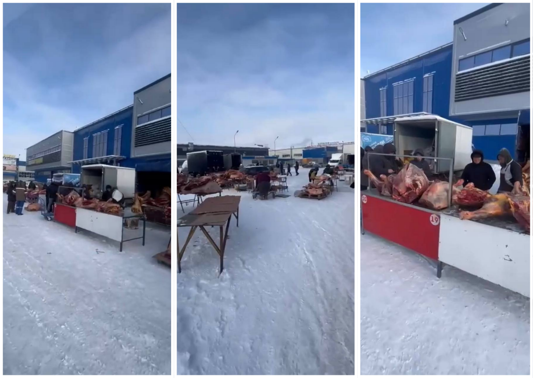 Картофель продается от 130 тг/кг, лук 150 тг/кг, капуста 170 тг/кг. Из мясной продукции представлены говядина по цене 3300–3500 тг/кг, конина 3000–3300 тг/кг, баранина 3500 тг/кг.