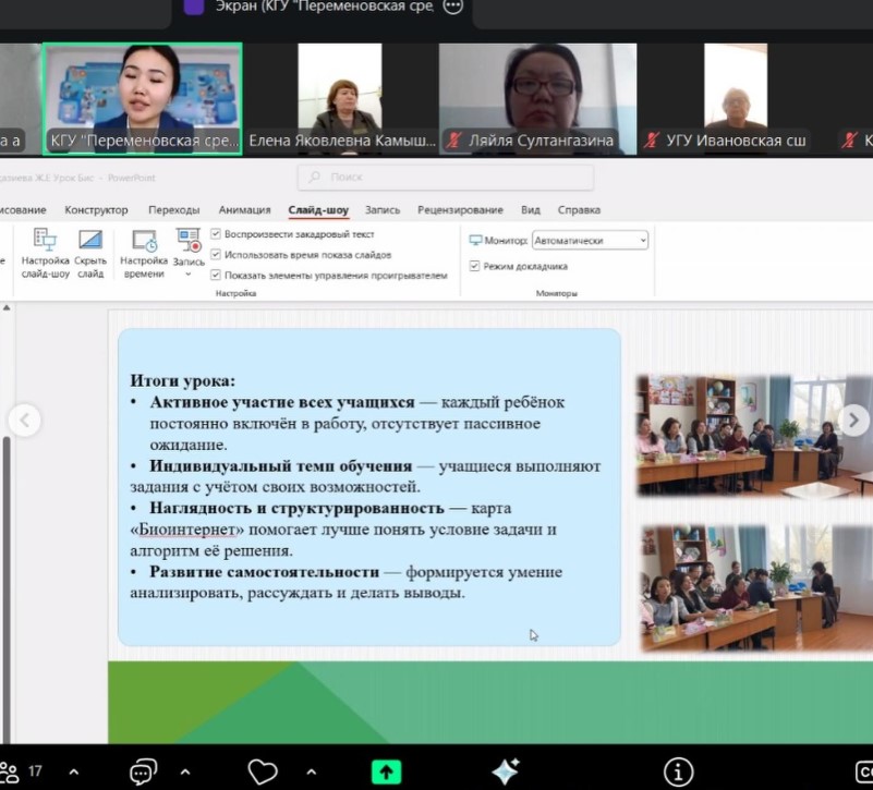 📚 Сегодня учителя Переменовской средней школы на опыте обучения учеников Ф. Я . Вассерман провел вебинар по внедрению педагогической технологии БиС (Биоинформатика и Синергетика).