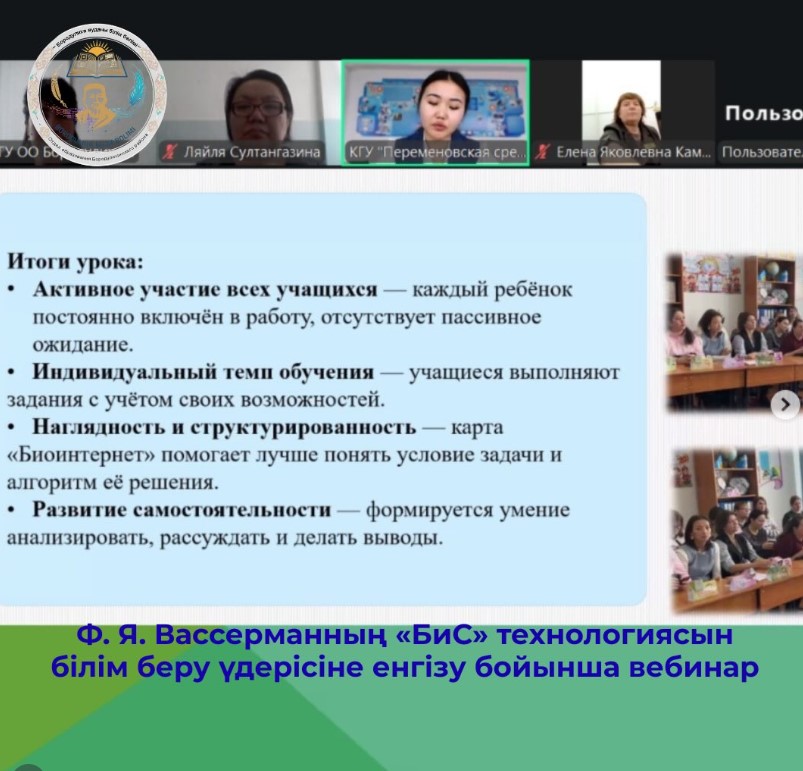 📚 Бүгін Переменовка орта мектебінің педагогтері оқушыларды оқыту тәжірибесіне Ф. Я. Вассерманның «БиС» (Биоинформатика және синергетика) педагогикалық технологиясын енгізуге арналған вебинар өткізді.