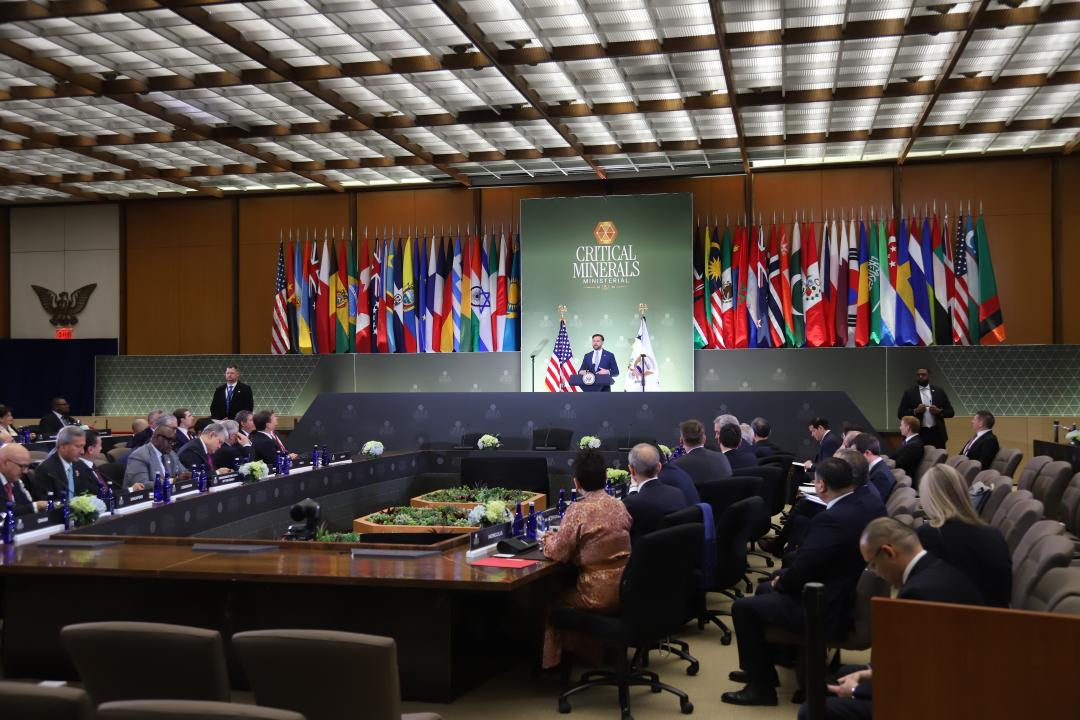 В ходе мероприятия состоялся обмен мнениями по вопросам диверсификации и укрепления глобальных цепочек поставок критических важных полезных ископаемых, а также развитию международного сотрудничества в сфере их добычи, переработки и логистики.