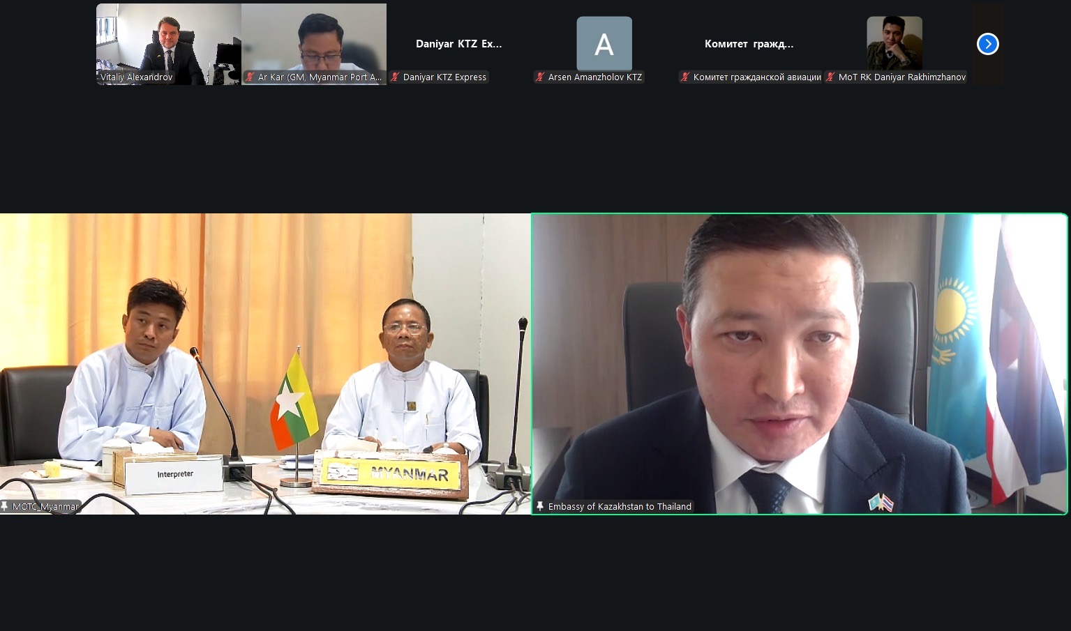 Согласно договоренности сторон, 11 февраля 2026 года состоялись первые межведомственные онлайн консультации между министерствами транспорта Республики Казахстан и Республики Союз Мьянма.
