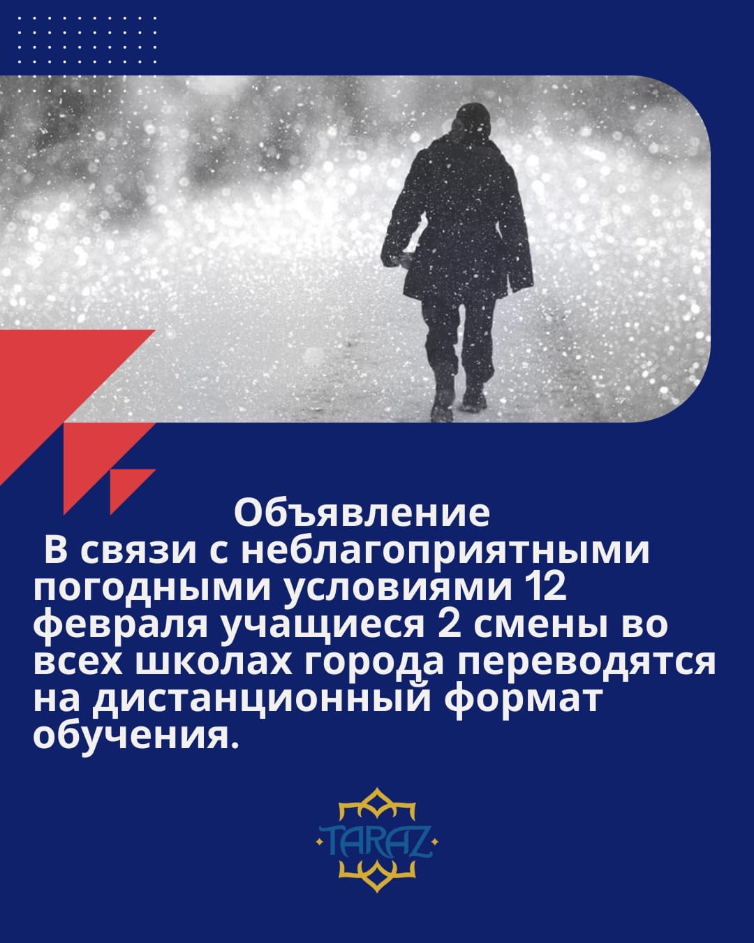 В связи с неблагоприятными погодными условиями 12 февраля учащиеся 2 смены во всех школах города переводятся на дистанционный формат обучения.