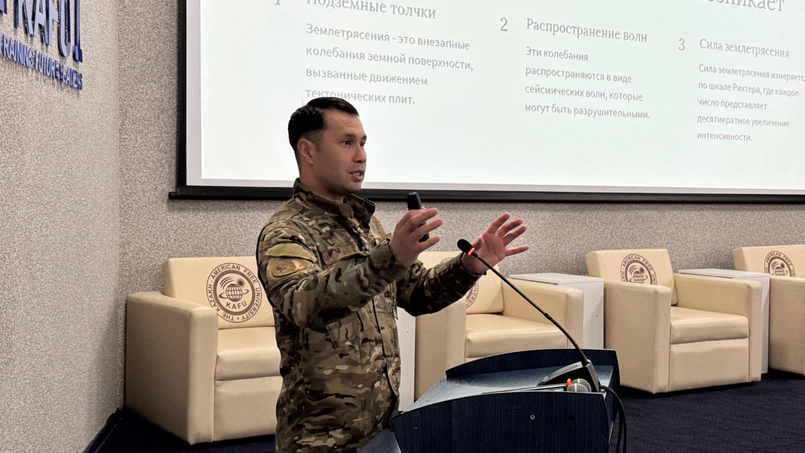 В Восточном Казахстане в рамках месячника по профилактике безопасности  при землетрясении,  спасатели продолжают проведение  сейсмотренировок на различных объектах региона. Сегодня  для студентов высшего учебного заведения – Казахстанско-Американского свободного университета сотрудники службы ЧС провели инструктаж и закрепили полученные навыки на практике. По сигналу тревоги студенты и преподаватели покинули здание или  заняли безопасные места.