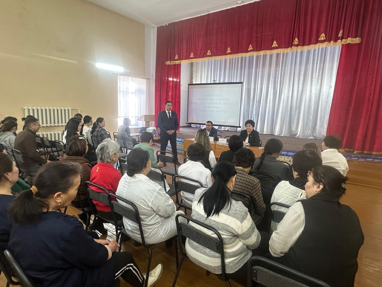 В рамках утвержденного сетевого графика председатель районного маслихата Калиева Г. и депутат районного маслихата Рахымбердинов А. провели встречу с педагогическим коллективом средней школы имени И. Айтыкова в селе Таргын. В ходе встречи подробно обсудили основные направления конституционной реформы: