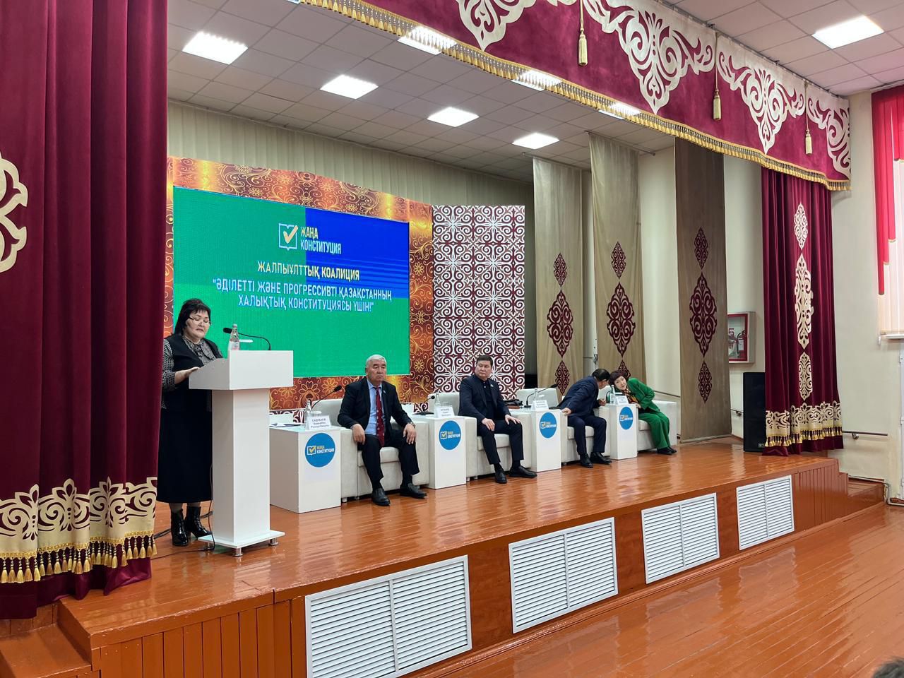 Член Республиканского народного штаба, депутат Сената Парламента РК С.К. Арубаев, а также члены рабочей группы Д.Д. Быкыбаев и У.К. Битенова подробно разъяснили проект новой Конституции и остановились на её ключевых приоритетах.