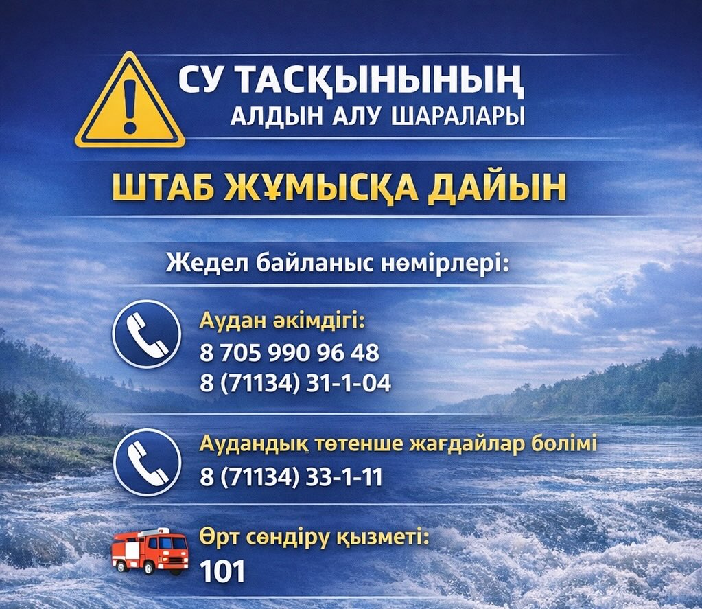 В этой связи распоряжением акима Сырымского района от 30 января 2026 года №11 н/қ утверждён план противопаводковых мероприятий и создан районный штаб.