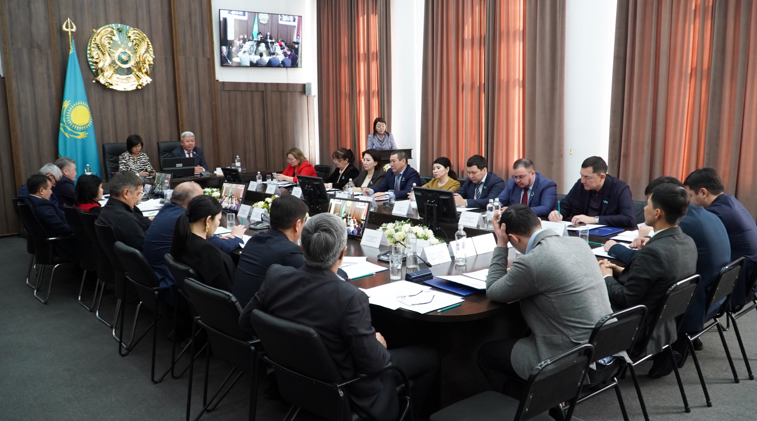 В первую очередь председатель маслихата Кенжебек Олжабай выступил с докладом о проведенной работе.
