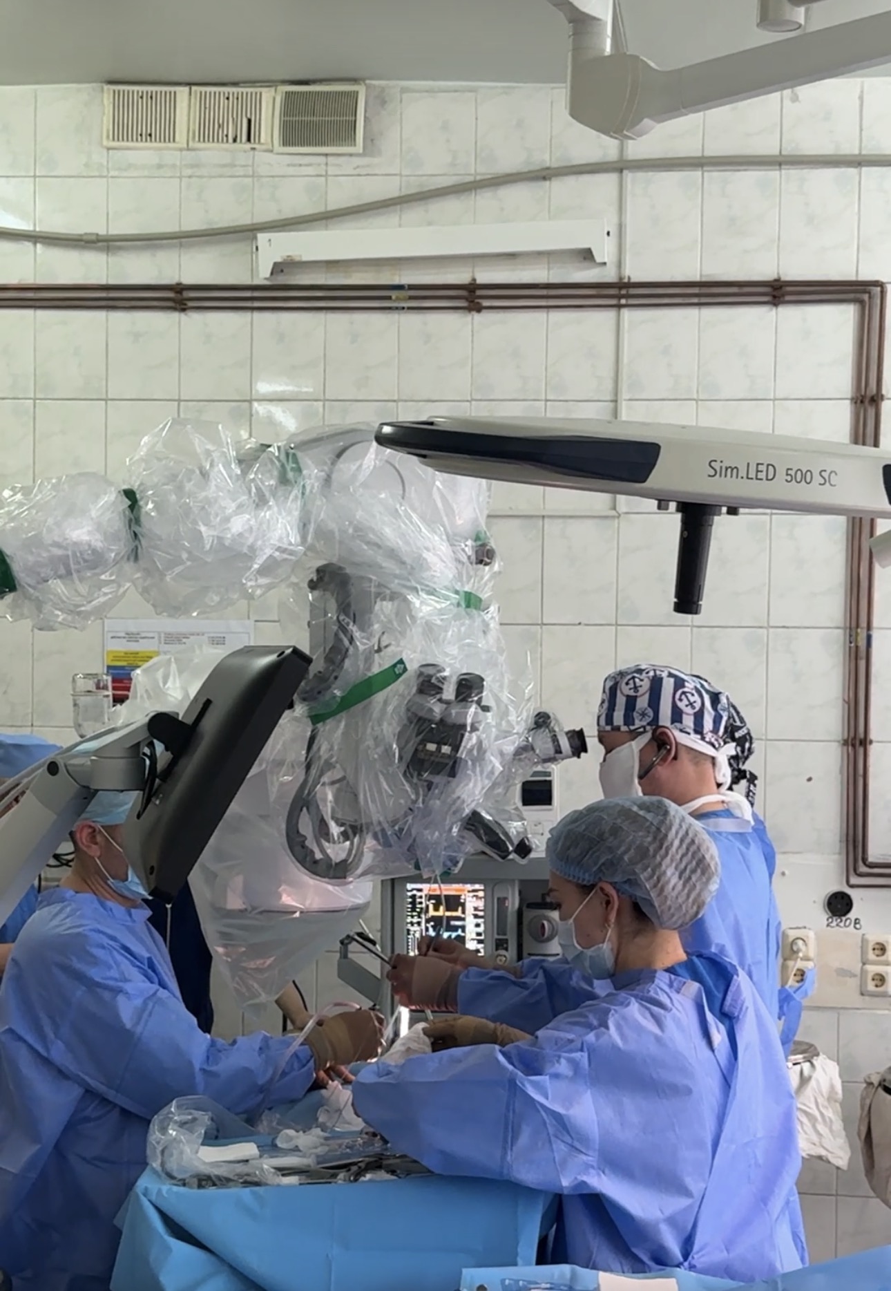 “Электроды были установлены на высоком уровне — в проекции VI–VII шейных и I–II грудных сегментов спинного мозга. Устройство подаёт контролируемые электрические импульсы, блокирующие проведение болевых сигналов, что позволяет значительно снизить или полностью устранить болевые ощущения”, – рассказывает заведующий отделением нейрохирургии ЦГКБ Марат Алматов.