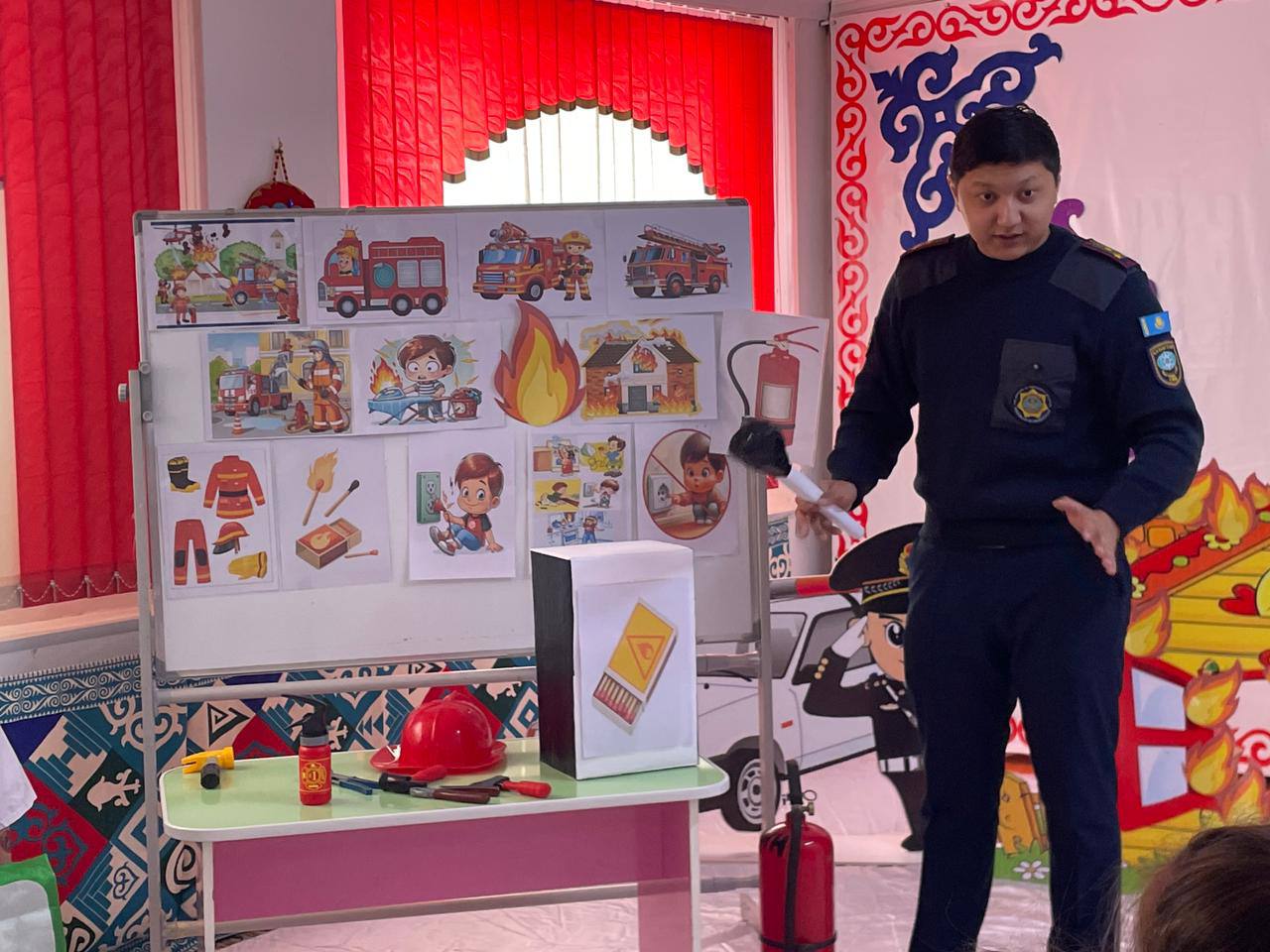 Сотрудники Отдела по чрезвычайным ситуациям Сарысуского района провели разъяснительную работу с коллективом детского сада «Сайн» по вопросам пожарной безопасности и предотвращения выпадения детей из окон. Специалисты напомнили правила предупреждения пожаров, безопасного использования электроприборов, порядок эвакуации и действия при чрезвычайных ситуациях. Особое внимание уделено установке защитных решёток, блокираторов на оконные ручки и недопущению оставления детей без присмотра. Мероприятие прошло в интерактивном формате, участники получили ответы на интересующие вопросы. Главная цель — профилактика несчастных случаев и обеспечение безопасности детей.
