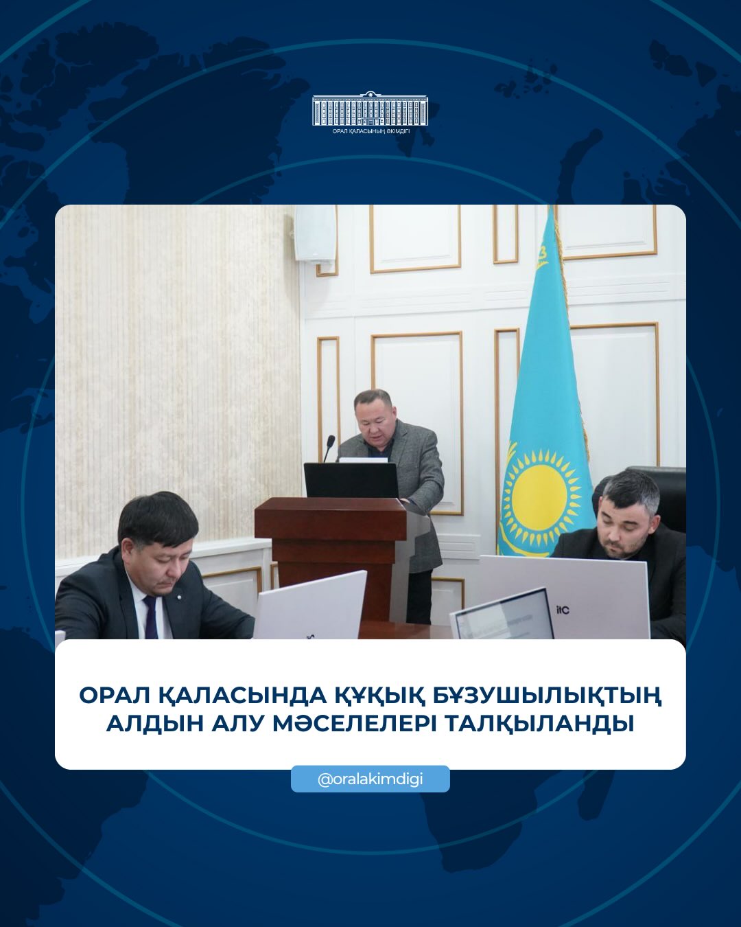 Затем с докладом о ситуации с правопорядком в городе выступил подполковник Уральского городского управления полиции Багдат Садыков. Также в докладе руководителя отдела занятости и социальных программ города Уральска Ерболата Каримова отмечена роль мер социальной поддержки в профилактике правонарушений.