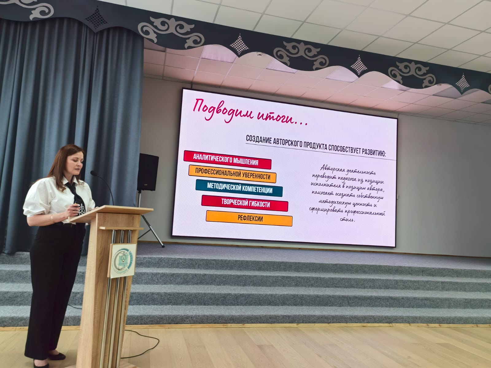Набатникова Т.И., заместитель директора Методического центра Управления образования остановилась на актуальности и важности рефлексии соответствия уровням квалификационных требований и трудовых функций педагога согласно Профессиональным стандартам для педагогов организаций образования. Развитие функциональной грамотности с применением искусственного интеллекта активно рассмотрели на мастер-классе Жусуповой Г.С., заведующей кафедрой ОГН ФАО «НЦПК «Өрлеу» ИПР по Костанайской области. Вдохновил участников на дальнейшую работу психологический тренинг «Учитель-PRO: точка влияния», проведенный Гаппаровым Ж.А., заместителем директора ФАО “НЦПК «Өрлеу» ИПР по Костанайской области.